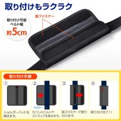 ■【簡単に取り付けられるデザイン!】幅5cmまでのショルダーベルトに簡単に取り付け可能で、面ファスナーを使用しているため、工具は一切不要。手軽に取り付けができるため、すぐにお使いいただけます。