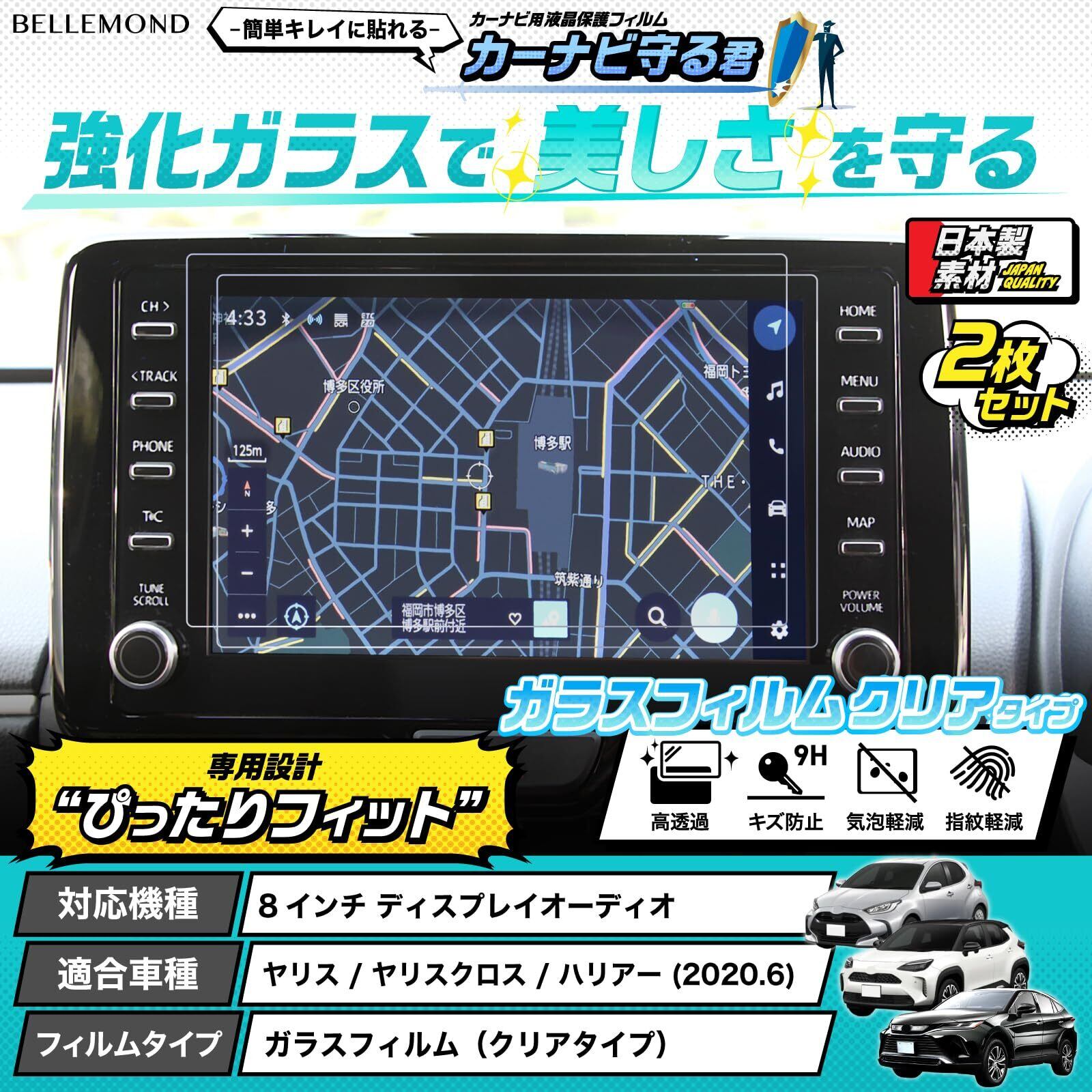 【2025最新】ベルモンド 2枚入り ヤリス ヤリスクロス ハリアー 80系 |ガラスフィルム|クリアタイプ|ナビ フィルム 8インチ 【 カーナビ守る君 】透明 傷防止 指紋軽減 保護フィルム カーナビ ディスプレイ アクセサリー TOYOTA YARIS CROSS HARRIER BELLEMOND B0824 2枚セット