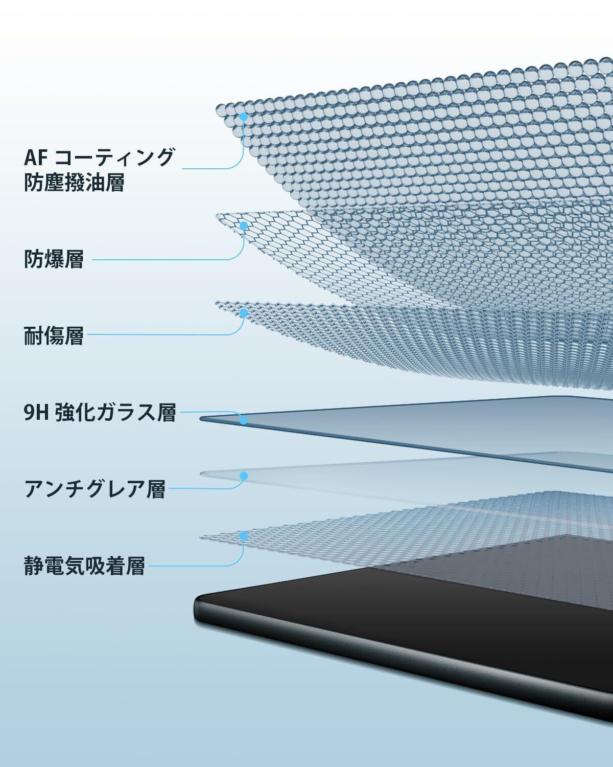 ■【業界最高水準の9H硬度!】この保護フィルムは9Hの高硬度を誇り、日常の使用で直面する傷や衝撃からしっかりとディスプレイをガードします。万が一の飛散防止機能も備えており、より安心です。