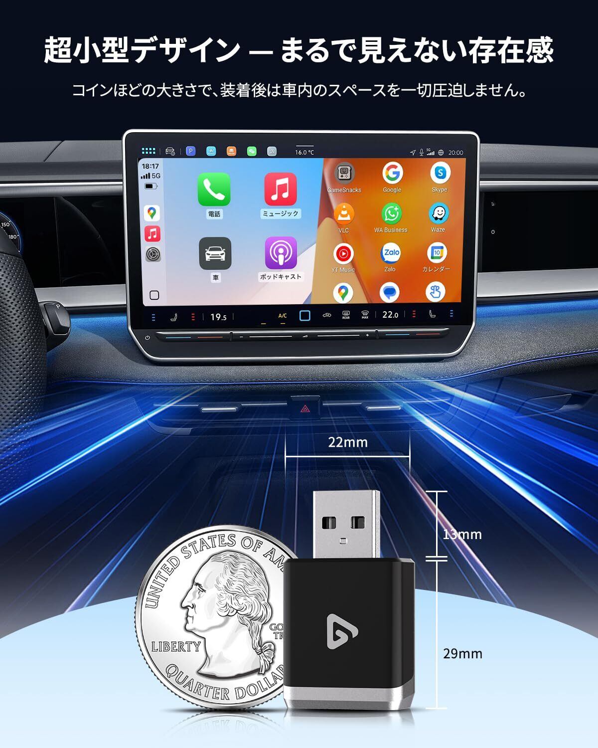 【2025最新】【YolanAuto 正規販売品・技適認証済】2025年新型 MINI ワイヤレス CarPlay & Android Auto USBアダプター