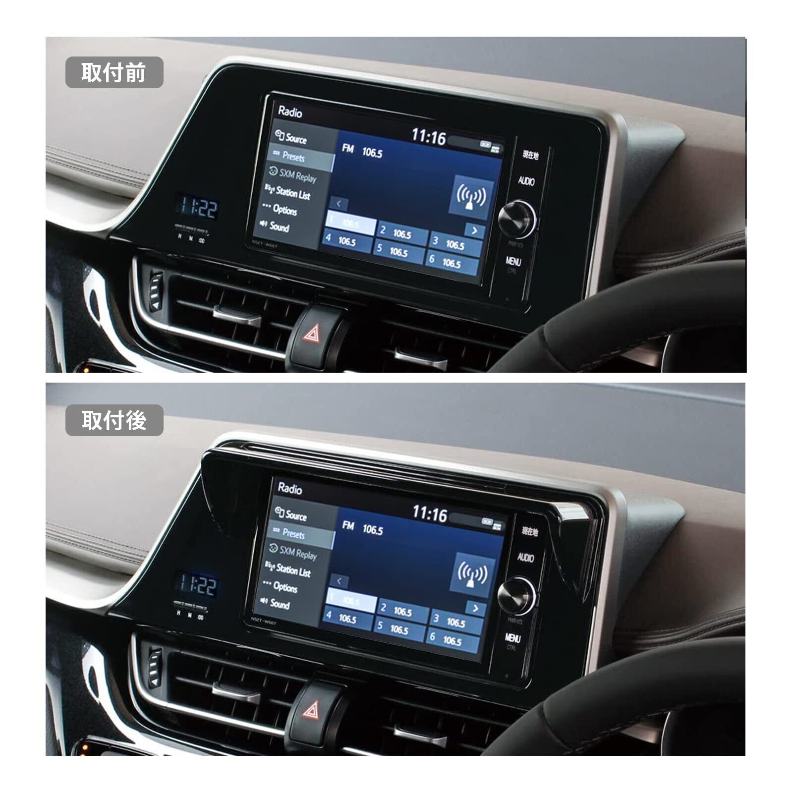 【車種専用・取付簡単】車種専用設計で、実車のカーナビの寸法をもとに設計・製作され、元のカーナビに製品を合わせることができます。製品の裏側に粘着性の強い住友3M製の両面テープで、取り付け時に離型紙を剥がし、対応する位置に合わせて設置すればよく、粘りが強くて落ちにくいです。