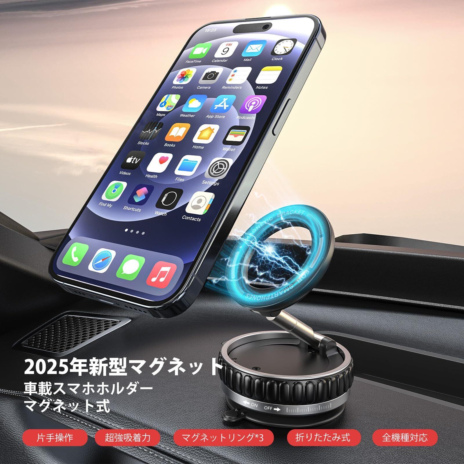 【強力磁石、マグセーフ非対応も安心】マグネットスマホホルダーでどのようなスマホも安定固定。マグセーフ対応・非対応問わず、車 スマホホルダーとして人気の機能性。吸着式スマホホルダーでスマホを安全にホールド。