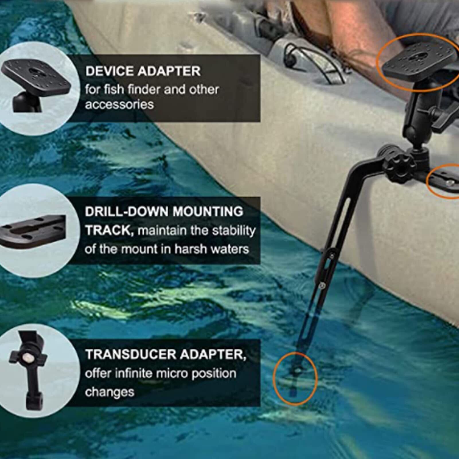 【限定セール】魚群探知機トラックマウントベース、ナイロンおよびステンレススチールカヤック魚群探知機取り付けプレートキット、ガーミンローランスエコマップ用、ボート用トランスデューサー取り付けアーム