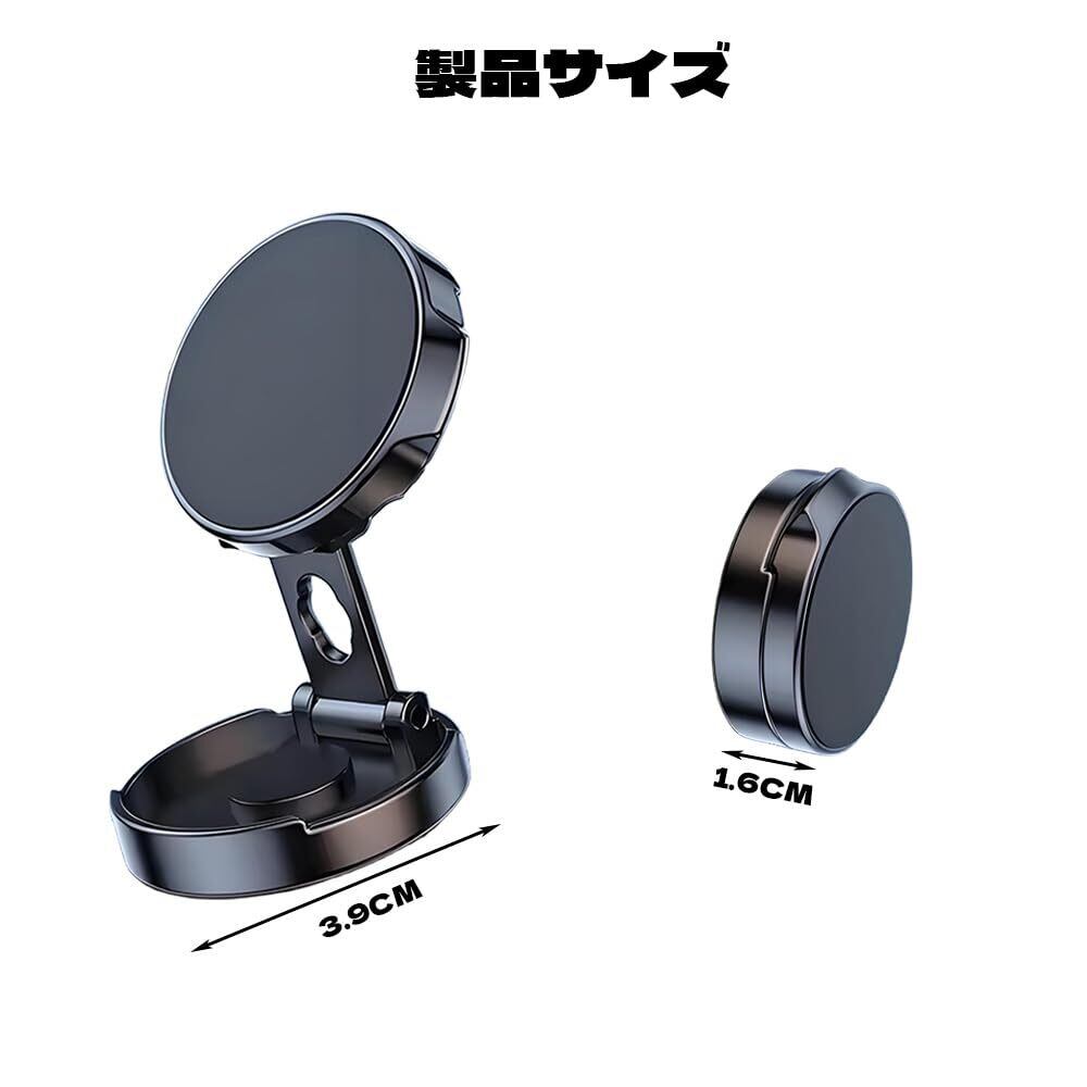 FUGSHIYI スマホホルダー 車 マグネット 車載スマホホルダー magsafe 高級合金素材 強磁力 スマホスタンド 携帯ホルダー 折りたたみ式 360°回転 片手操作 携帯スタンド カー用品 便利グッズ