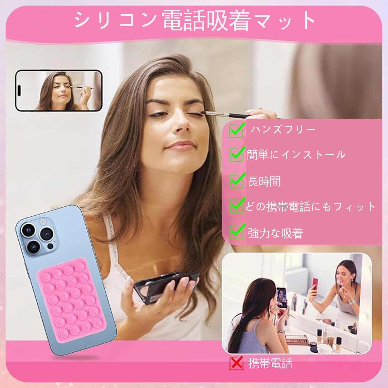 Leeneen 2個吸盤電話ケース マウント、シリコン吸盤電話ケース, シリコン吸引電話マウント, 滑り止め粘着式磁気電話ホルダー自撮り用携帯電話アクセサリー (ブラックピンク)