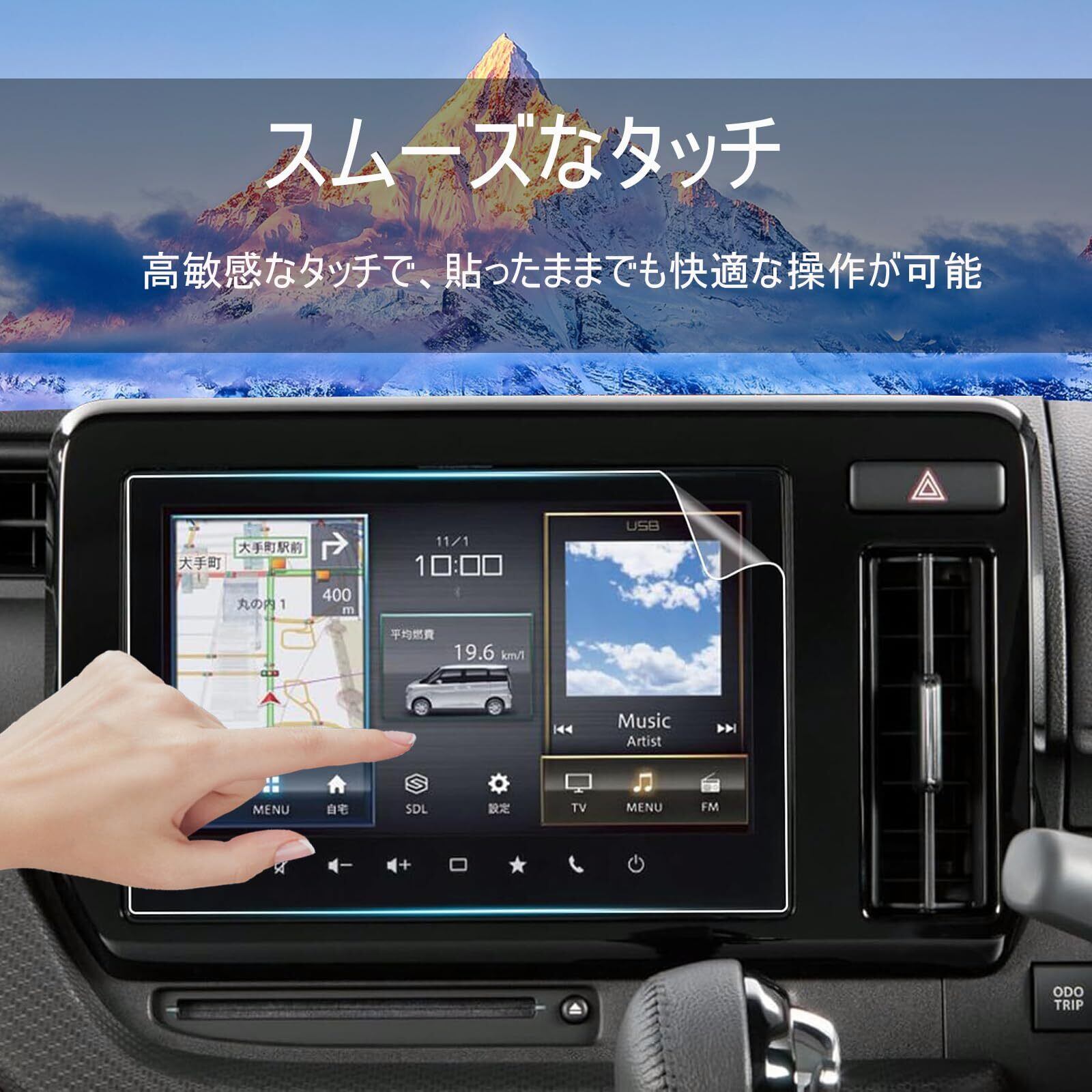 ■【指紋や汚れを防ぐ!】特別なコーティングが施されており、指紋や汚れが付きにくく、清潔なディスプレイを保持します。日常の使用においても快適な操作が可能で、運転中の視認性も向上します。