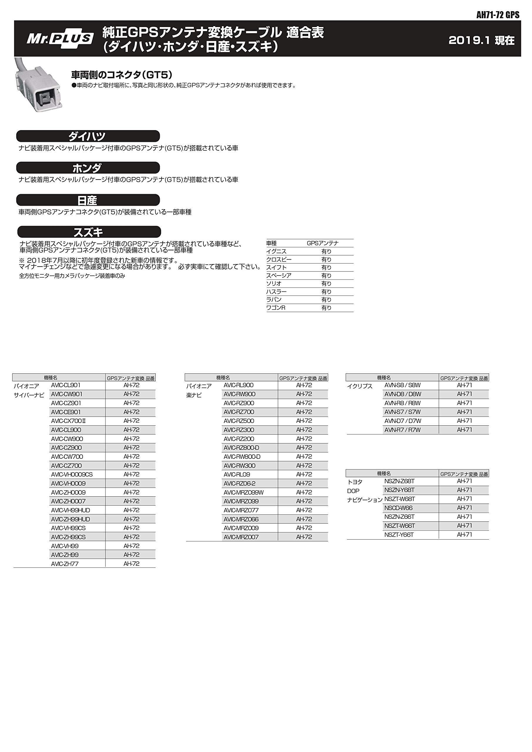 ・商品名:純正 GPSアンテナ 変換ケーブル(パイオニア ナビ用) AH-72