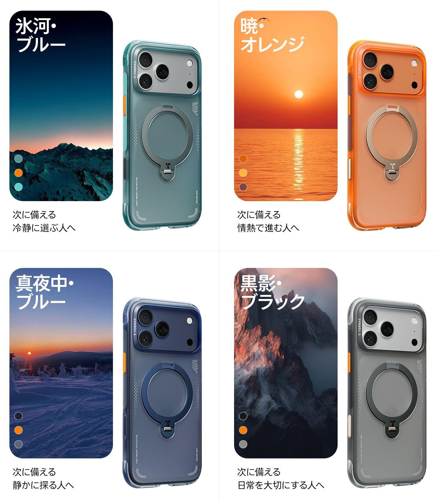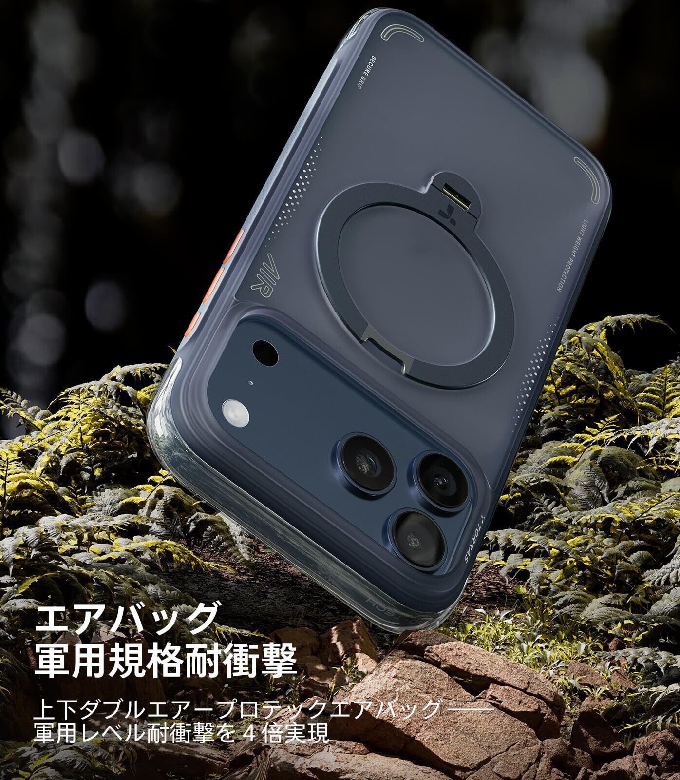 ・特徴:米軍MIL規格、エアバッグ構造、360度回転リングスタンド、MagSafe対応、カメラコントロールボタン付き