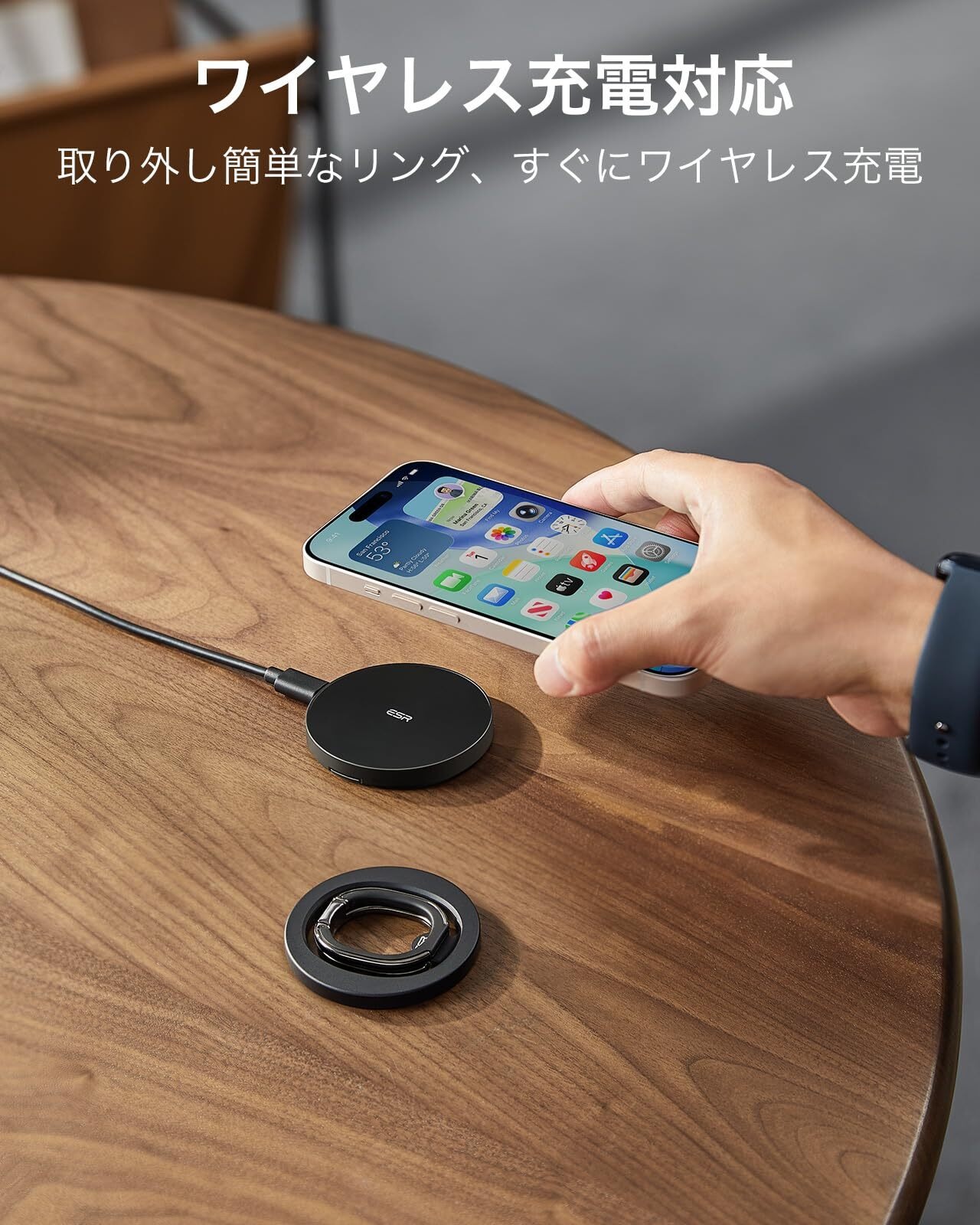 【ワイヤレス充電対応】リングはいつでも簡単に標準またはマグネット式のワイヤレス充電器と交換でき、充電後はすぐに簡単に再度装着。