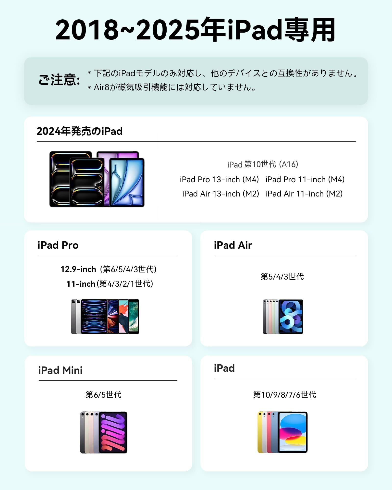 ・対応機種:2018年以降・2025年新型iPad(Mini7非対応)Air8