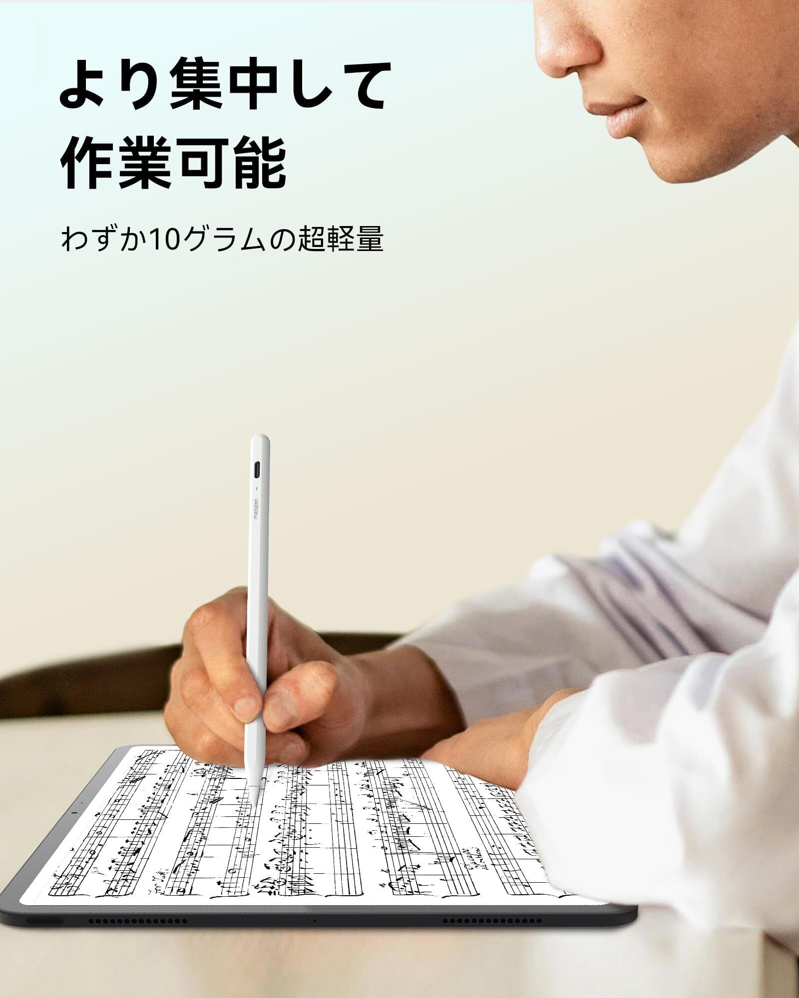 【在庫限り】【超軽量&長時間使用】Metapen iPad ペン 2024年新登場 アップルペンシル ペアリングなし 磁気吸着なし 極細 超高感度 誤作動防止 軽量 10g 便利 耐摩 タッチペン 長時間使用 実際な執筆体験 Type-C急速充電 2018年以降・2025年新型iPad対応(Mini7に非対応)Air8