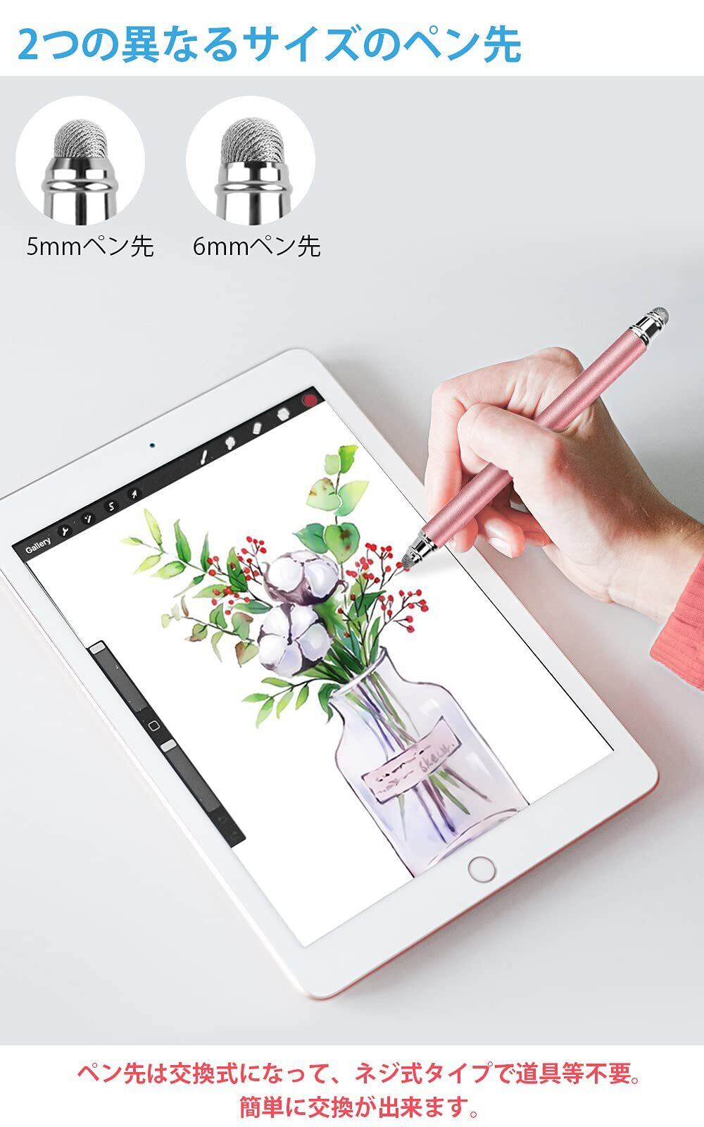 【タッチペン・デザイン】ペン本体は高品質アルミニウムを採用します。消耗しやすい素材ではなく、一本のペンは長く使えます。細かい文字、リンク等も正確にタッチできます!ペン先は導電繊維の素材を採用します。タッチペンを利用する場合は指紋などがスクリーンに残ることがなくなります。