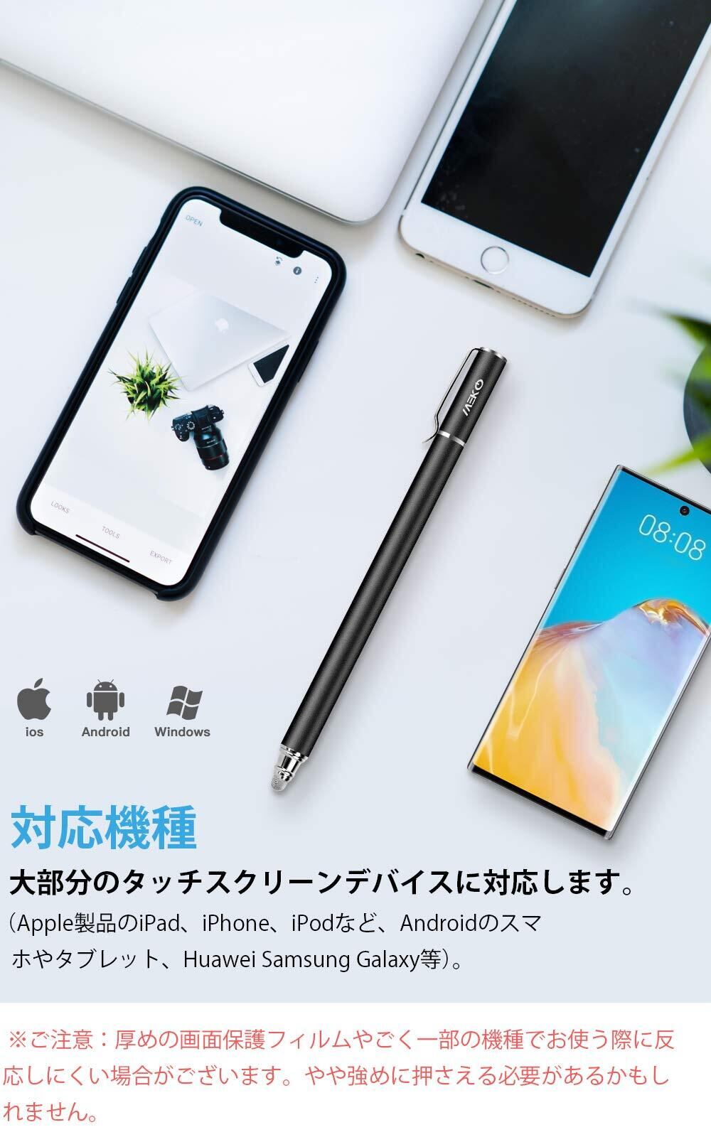 スタイラスペン MEKO(第2世代)4本セットタッチペン スマホ iPhone iPad スタイラスペン Android スマートフォン タブレット用 ペン導電繊維ペン先 ブラック/ブルー/ホワイト/ローズゴールド