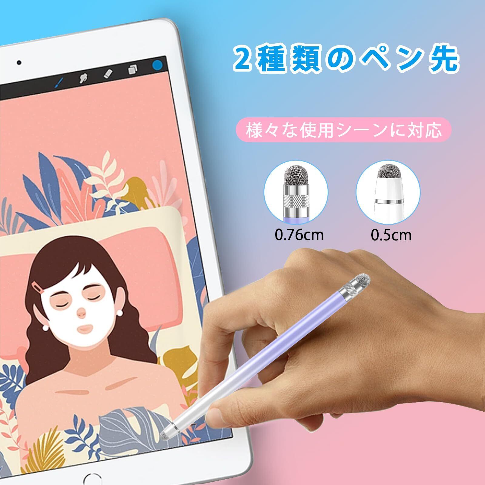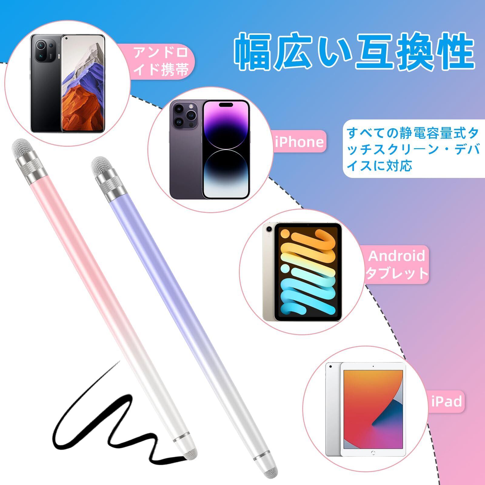 Bopomofo タッチペン2本スタイラスペン高感度 高精度タブレット ペンiPhone/iPad/Android用、すべてのタッチスクリーンに対応(ピンク/パープル)