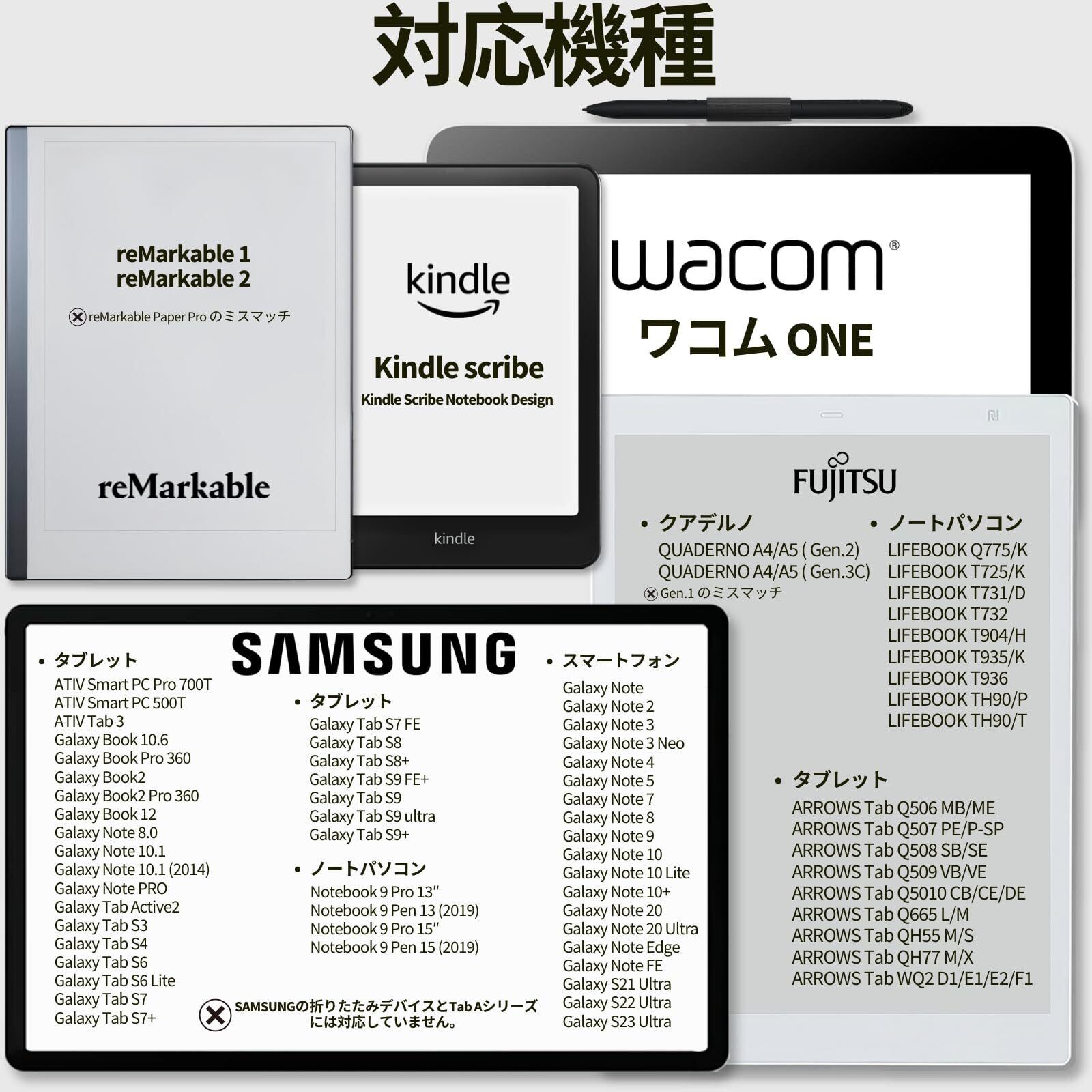 ■【多彩な対応機種!】Galaxy Noteや富士通 Quaderno (Gen.2/Gen.3C)など、複数のデバイスで使用できます。デジタルノートやアプリでのメモ作成、イラスト描写に最適です。あなたのデジタルライフをより豊かにします!