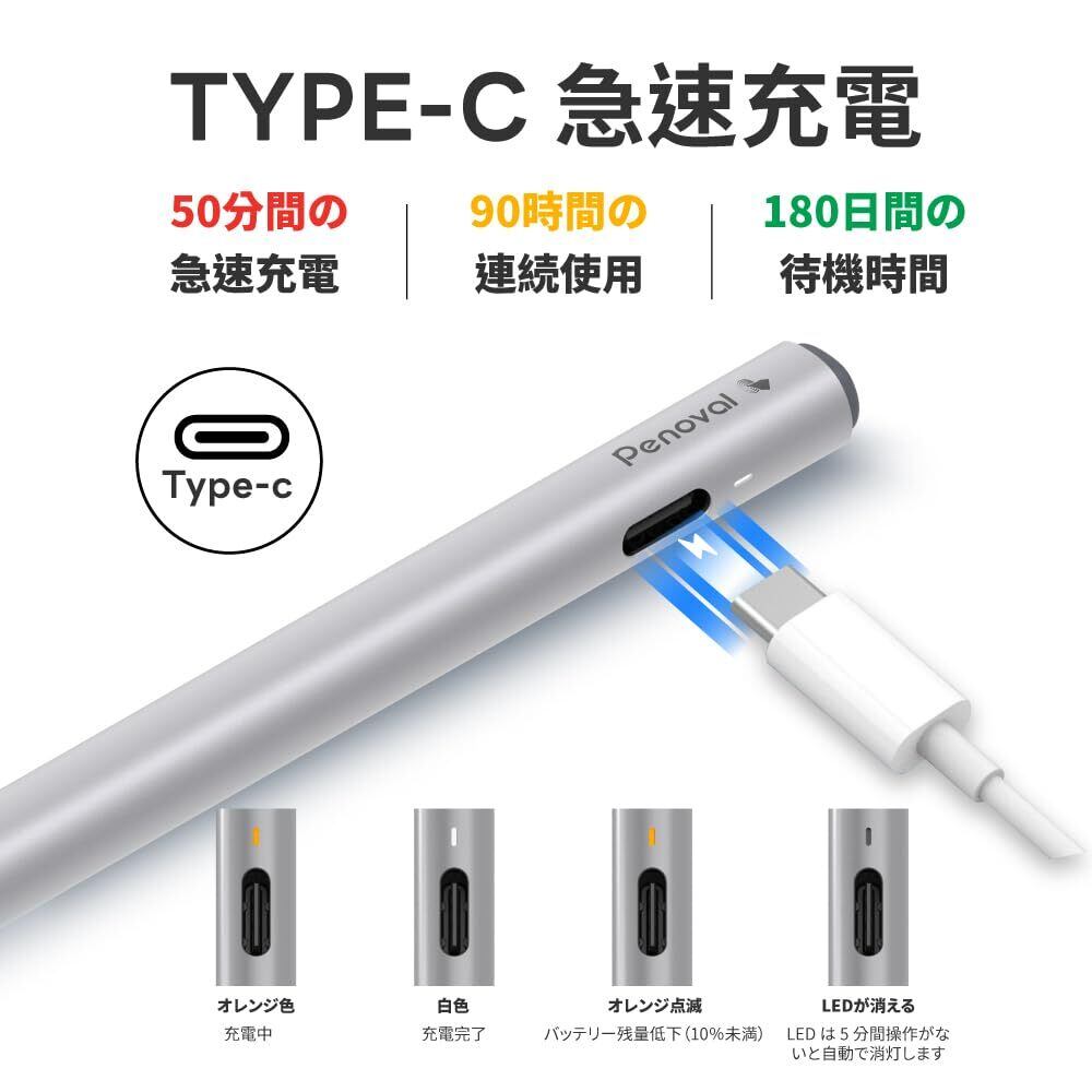 タイプ -C 急速充電 & アルミニウム合金 - 以前のバージョンのUSIと比較して、この充電モデルはより環境に優しく、再利用可能になります。50分間充電すると最大90時間の使用時間。スタイラスペンはアルミニウム合金製で、頑丈で長持ちします。
