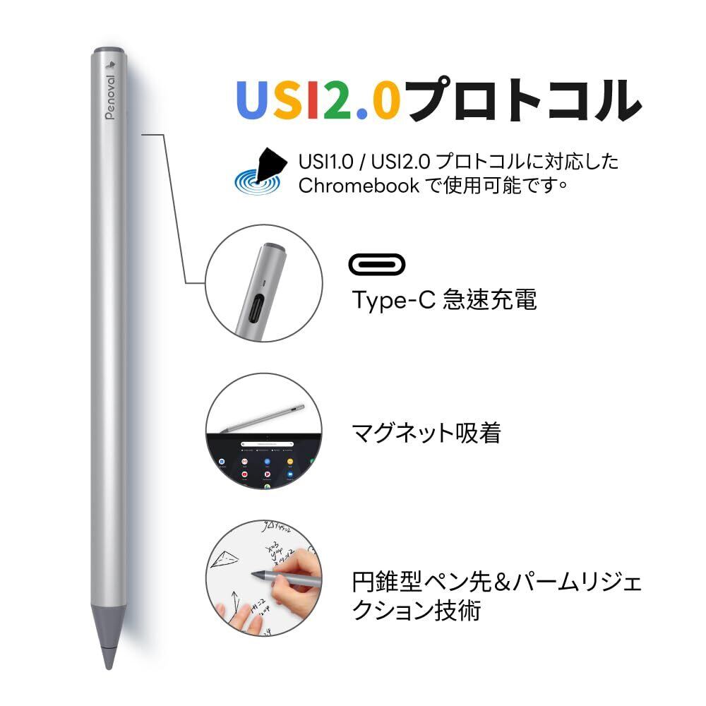 【特別価格】Penoval USI2.0 スタイラス ペン Chromebook用 4096 レベル 圧力 デュエット用 Google pixel tablet用 chromebook C436 HP chromebook X360 12b/14b スペア ペン先 付属