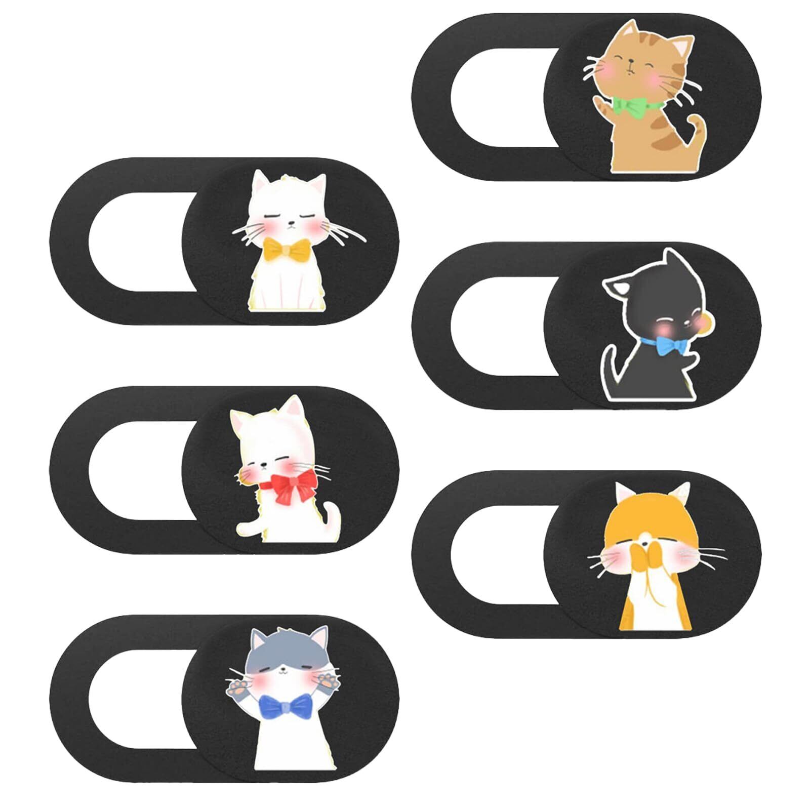 PAVIKE ウェブカメラカバー【6個 猫デザイン】カメラ目隠し メタルカメラカバー カメラカバー 薄型 スマホ カメラ 隠し 目隠し レンズ カバー 盗撮防止 プライバシー保護 すぐ出す 簡単開閉 スライド式