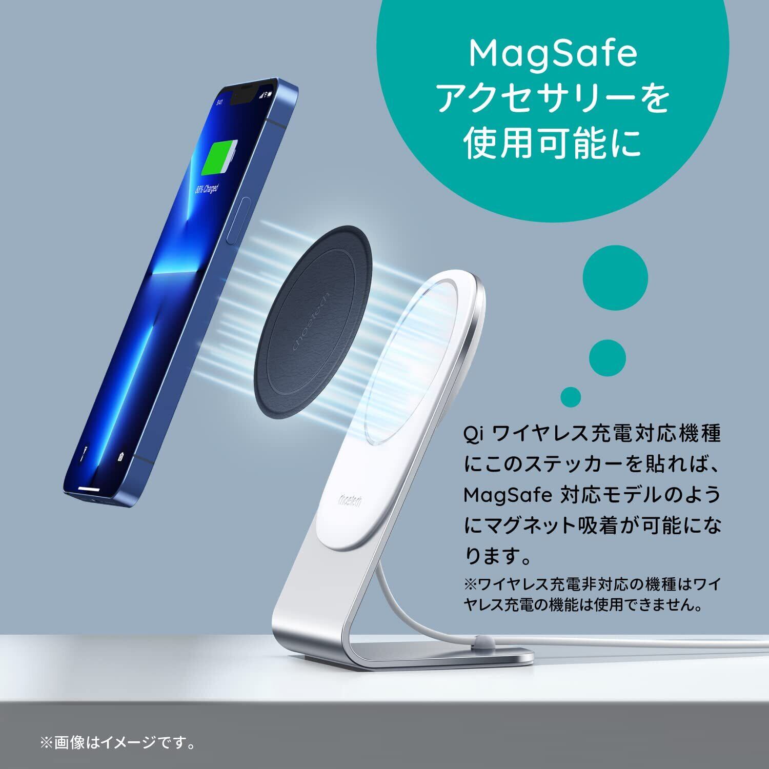 【MagSafe非対応の製品を対応可能に】MagSafe非対応のスマートフォンの背面に貼るだけで、簡単にMagSafe充電が可能になります。