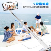 ■【多機能デザインで撮影をサポート!】この自撮り棒は、最大103cmまで伸びる7段階の調節機能を備えています。軽量設計と折りたたみ式のため、持ち運びも簡単!セルフィー撮影やグループ写真、動画配信といった様々なシーンで活躍します。