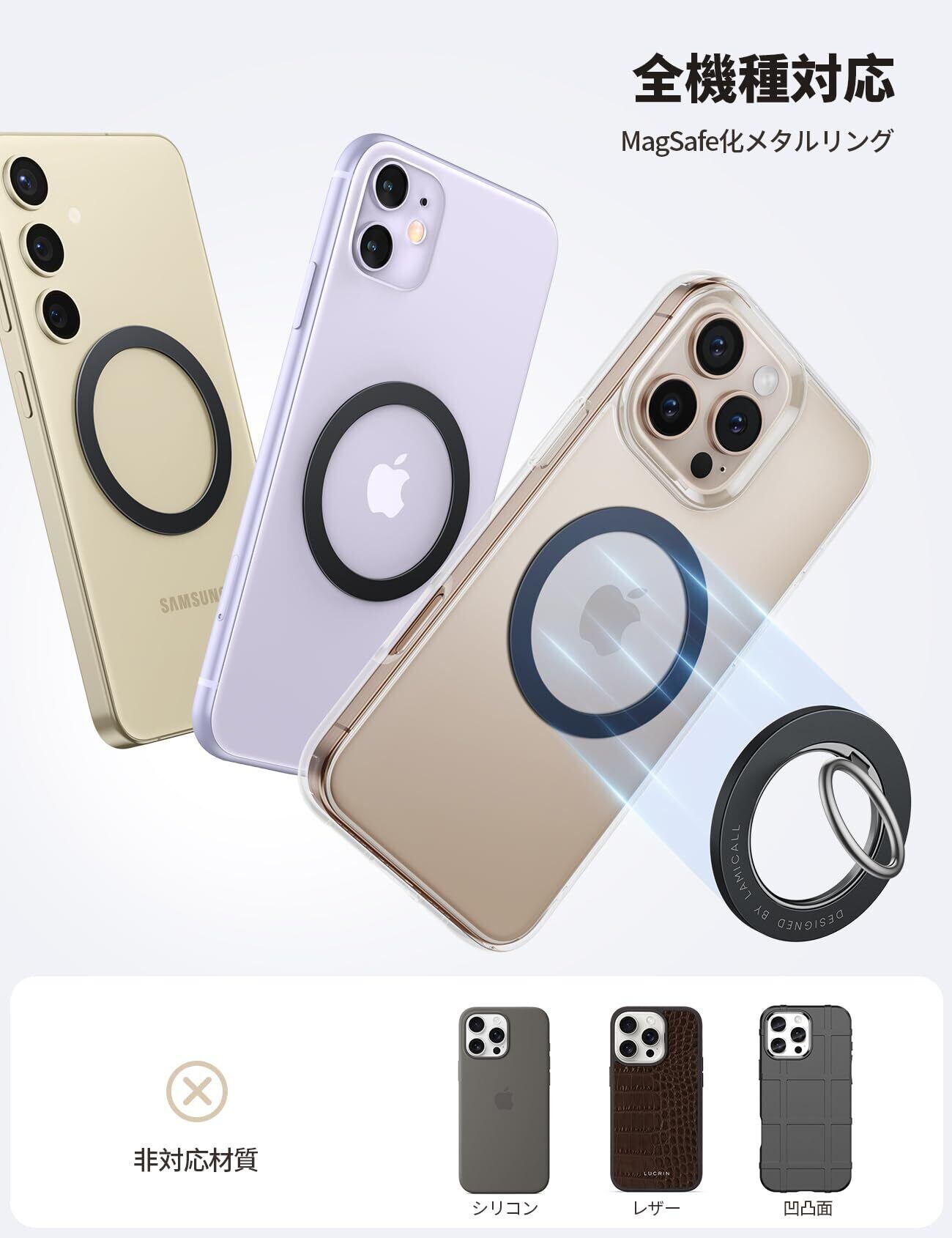 ️【MagSafe化・マグセーフシール】メタルリングは簡単に非magsafeスマホやケースをMagSafe化することができます。MagSafe機能のスマホに貼り付けると、吸着力を強めます。磁気シールを使用すれば、設備をいろんなMagSafe対応デバイスに気軽に接続できます。magsafeスタンド / マグネットスマホリング / magsafeカードケース / マグネット車載ホルダー / バッテリーパックなど製品にしっかりと吸着します。アクセサリーを転換することが便利に使用します。さまざまなシーンでニーズに応えます。それだけでなく、️取り外し不要でワイヤレス充電できます。