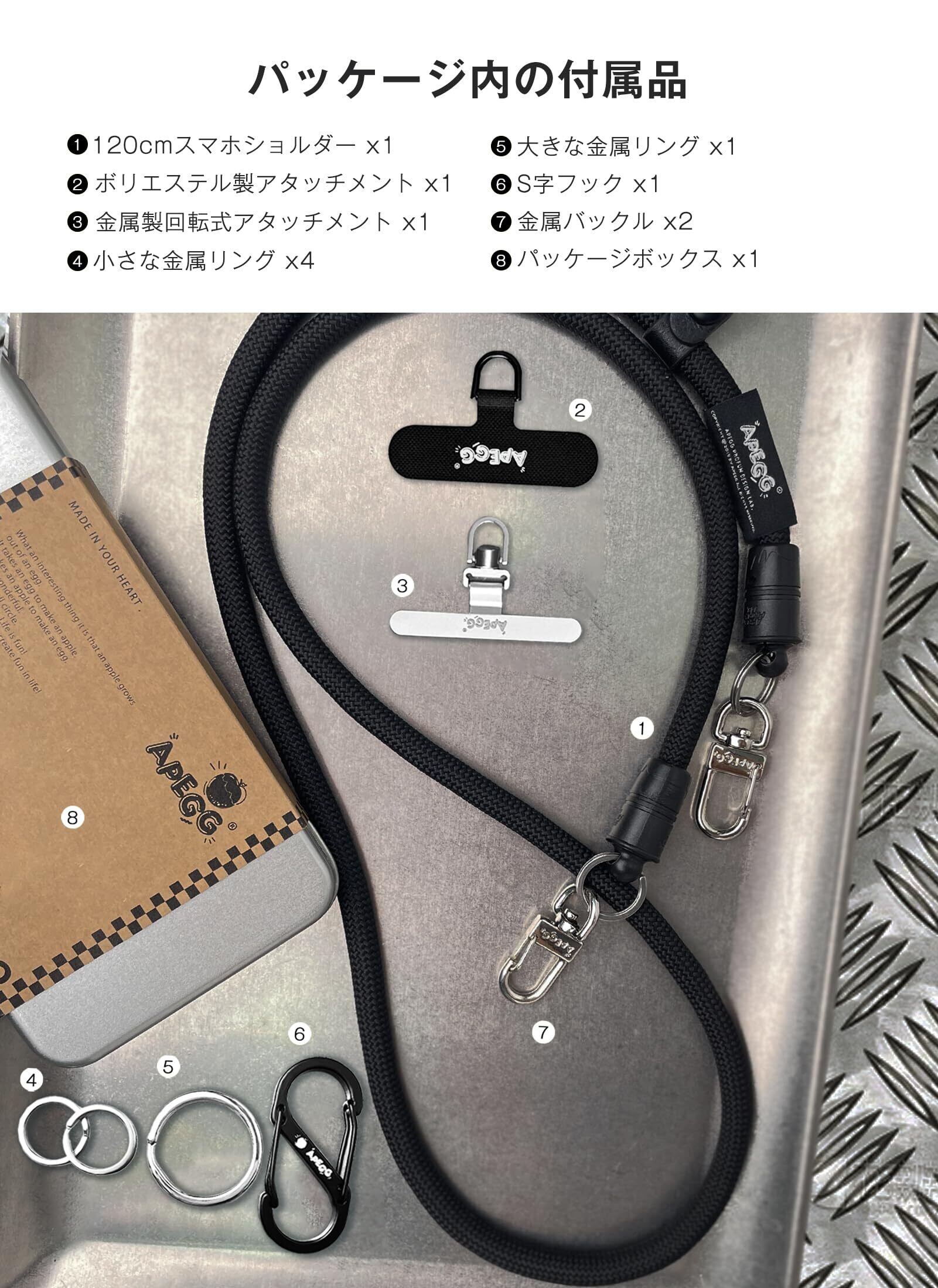■【多機能スマホショルダーで日常を便利に!】APEGGのスマホショルダーは、全機種対応でiPhoneを含むさまざまなスマートフォンと組み合わせて使えます。120cmの長さはストラップの位置を自由に調整でき、肩掛けや首掛け、斜めがけスタイルで自分のスタイルに合わせて活用できます。