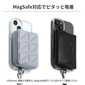 ■【MagSafeに対応したしっかりとした固定力!】内蔵されたマグネットにより、MagSafe対応のiPhoneにしっかりと固定できます。簡単に着脱できるため、急な用事にもスムーズに対応可能。安心してスマートフォンと一緒に持ち運べます。