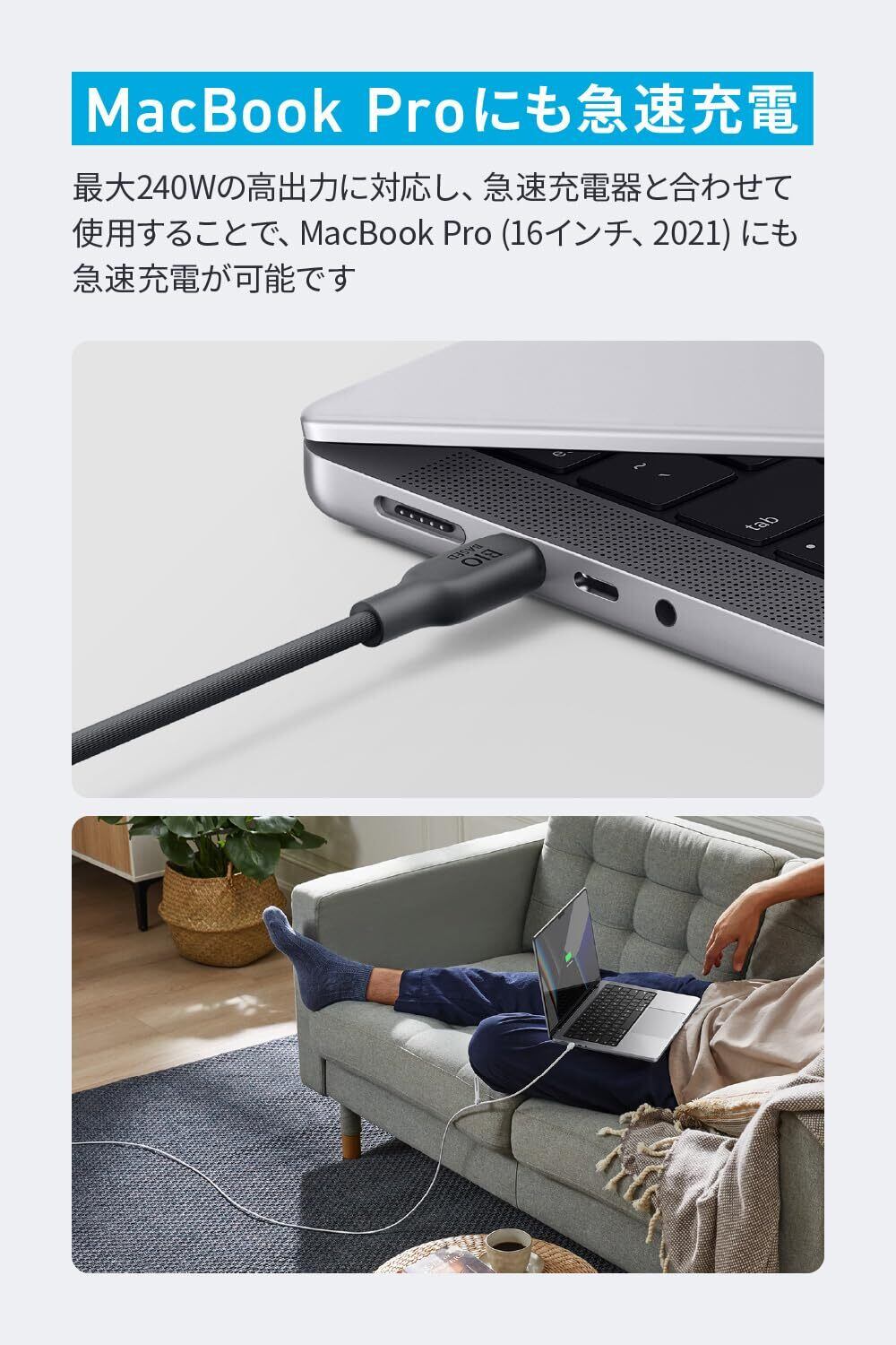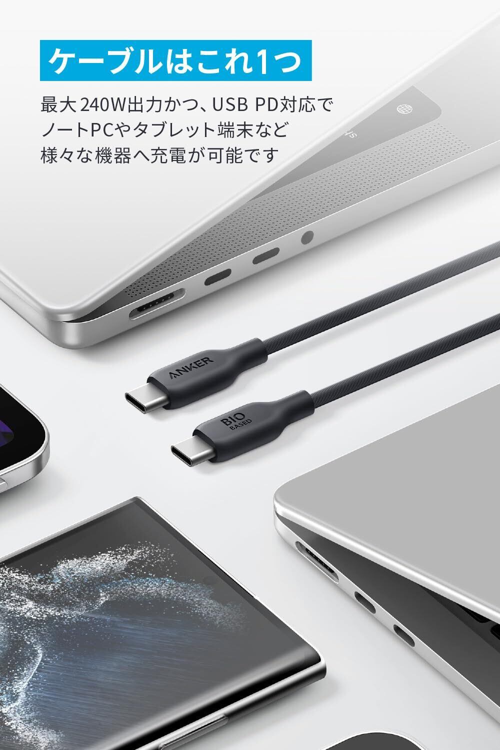 Anker 543 エコフレンドリー USB-C & USB-C ケーブル 植物由来素材 240W 急速充電 iPhone 16 / 15 MacBook Pro iPad Pro iPad Air 5 Galaxy S24 各種対応 (1.8m ブラック)