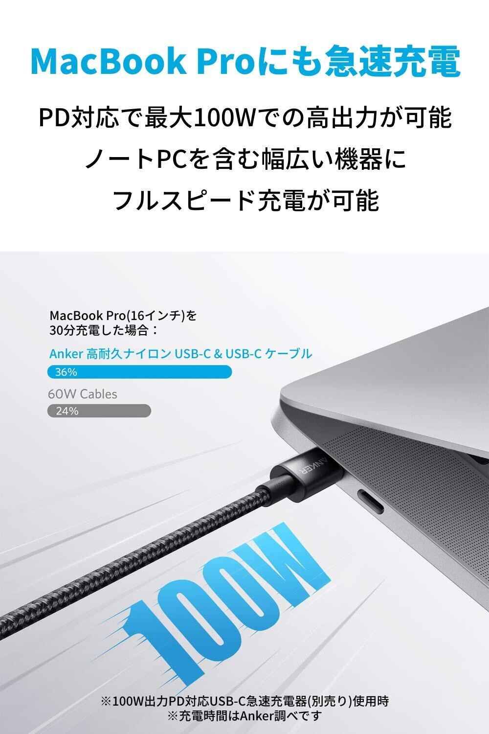 Anker 高耐久ナイロン USB-C & USB-C ケーブル 100W USB PD対応 iPhone 15 /15 Pro MacBook Pro iPad Pro/Air iPad Air 5 Galaxy S24 Pixel LG 対応 (3.0m ブラック)
