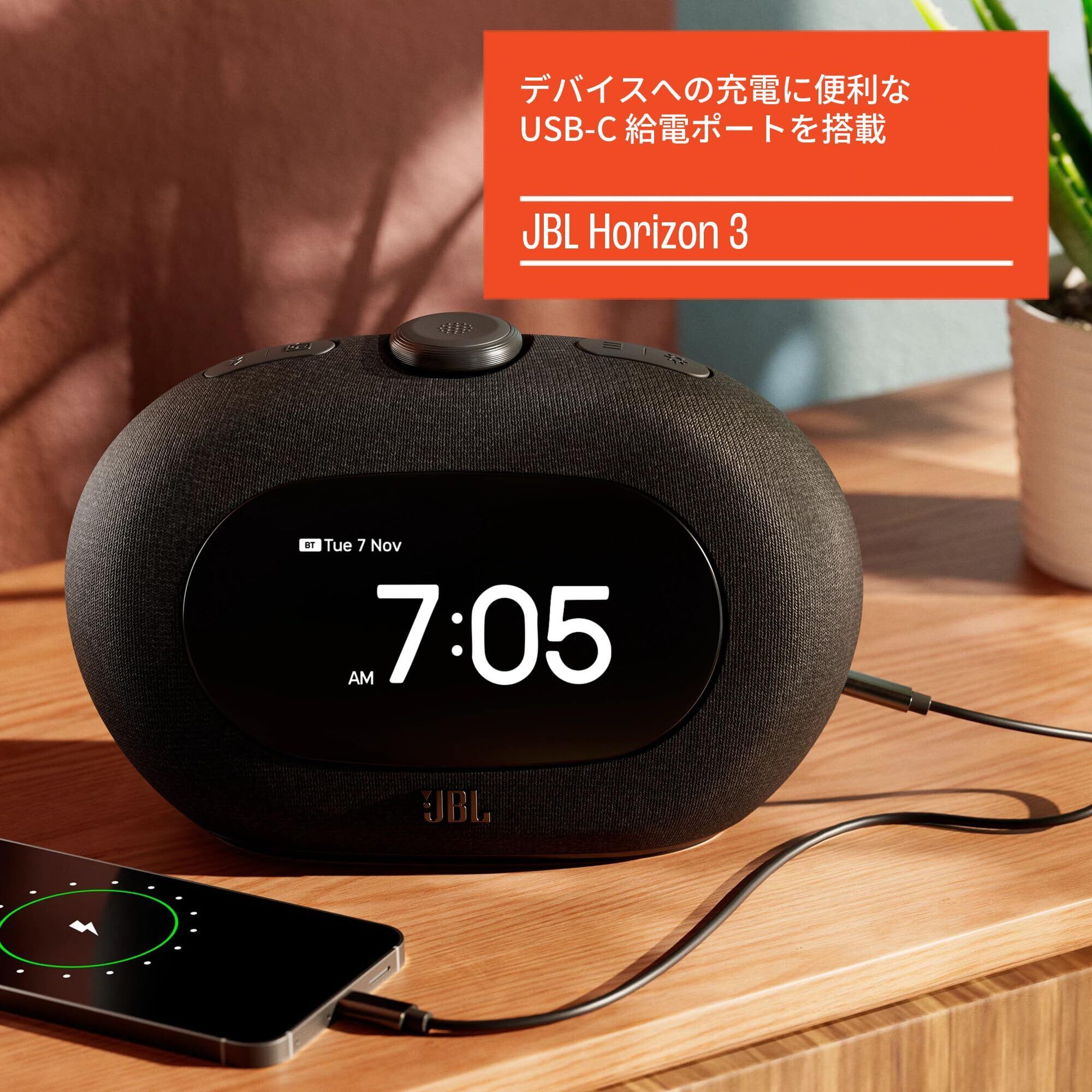 JBL HORIZON 3 Bluetooth ワイヤレス スピーカー/アラームクロック/アンビエントライト搭載/ワイドFM対応/バッテリー非搭載/給電用USB Cポート搭載/ブラック JBLHORIZON3BLKJN