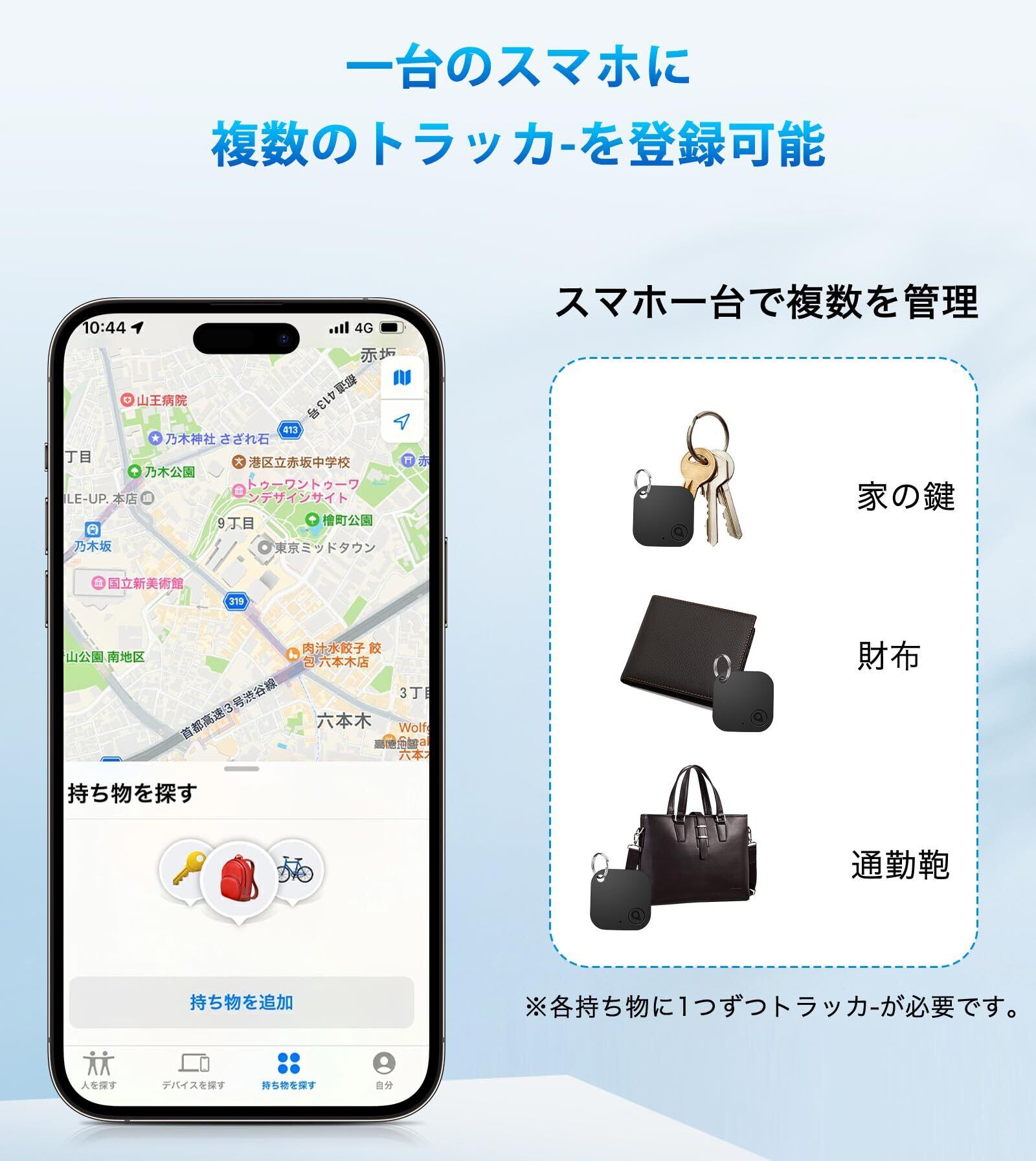 ■【超長持ちバッテリーで手間なし!】エアタグは電池交換可能な仕様となっており、長期間にわたってご利用いただけます。電池残量はアプリから簡単に確認でき、手間いらずで管理可能です。