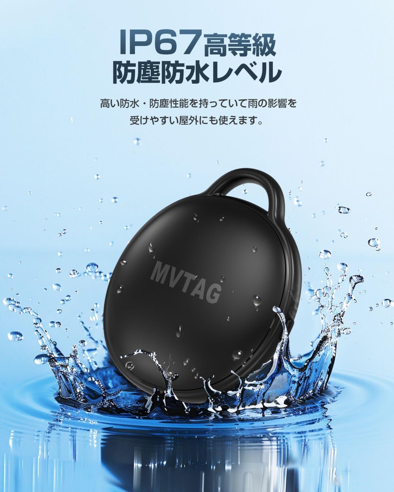 【プライバシー保護】位置情報などは紐付けられているApple IDでしか確認できません。あなたがペアリング解除しない限り、紛失防止タグがリセットされてもほかのApple IDと接続できません。また、Apple「探す」ネックワードと連携しているので、Appleのプライバシー規約に基づきデータ・情報などはすべて暗号化され、プライバシーは厳密に守られています。個人が特定されませんので安心して使えます。【IP67高性能防塵・防水】IP67の防塵・防水性能を備え、屋外でも安心して使用できます。