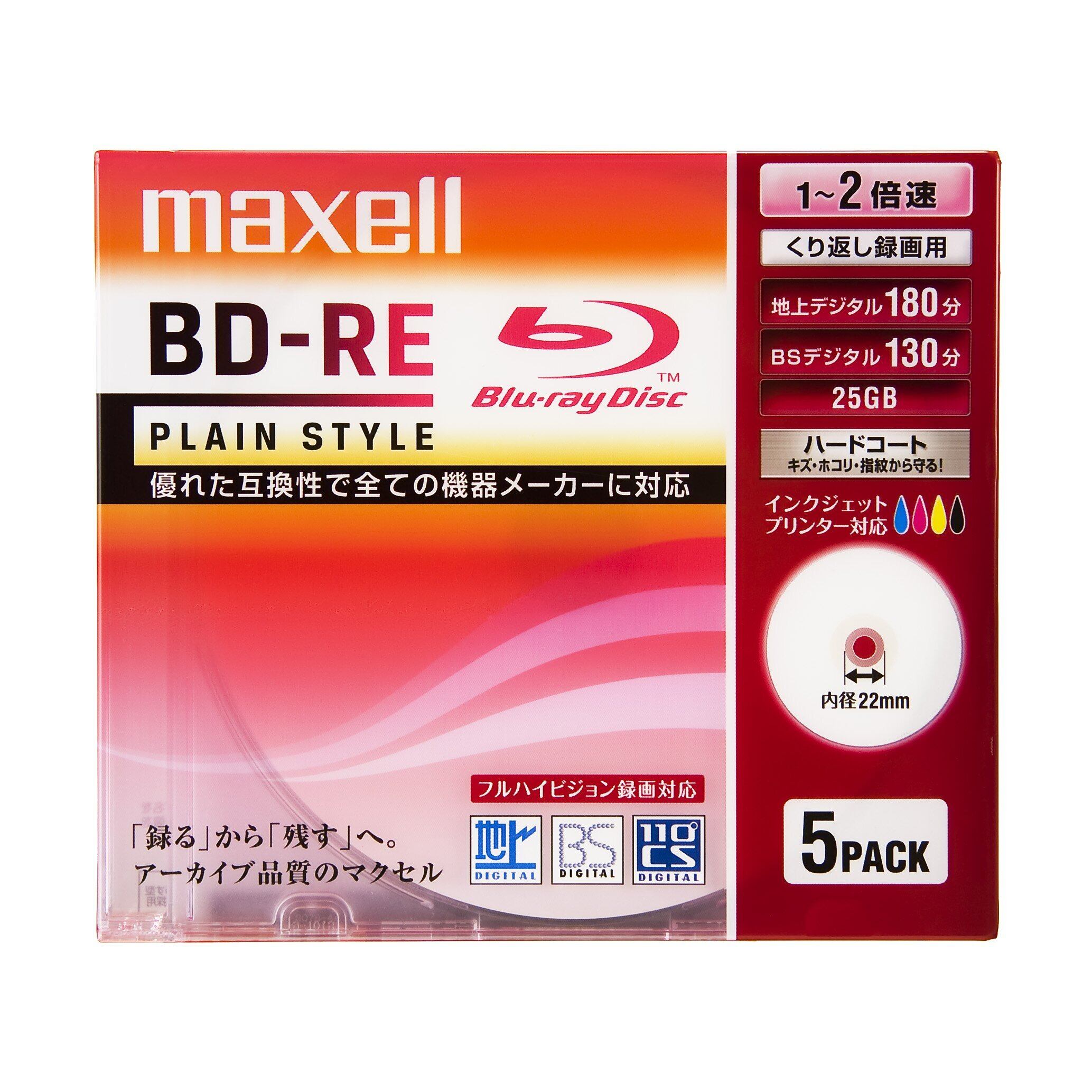 maxell 録画用 BD-RE 130分 2倍速対応PLシリーズ インクジェットプリンタ対応ホワイト(ワイド印刷) 5枚 5mmケース入 BE25VPLWPA.5S