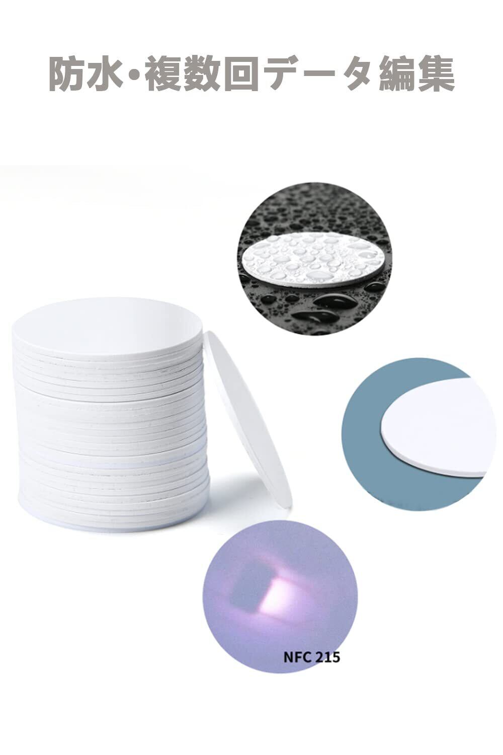 100枚入りNFCカード、直径:約25ミリ、Ntag215チップはNtag203、Ntag213、Topaz 512のすべての機能と互換性があります。