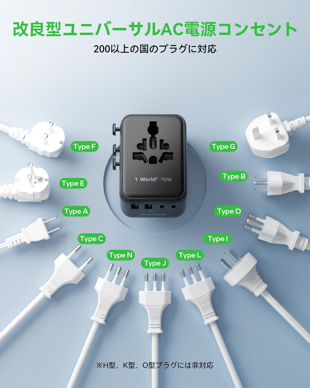 【新着商品】【最新改良型・より小さい!】MOMAX 変換プラグ PD 70W GaN 急速充電 海外旅行用電源変換 7台同時充電 3*USB-C PD & 2*USB-A QC &2*ACコンセント 2個AC差込口 海外用コンセント C/BF/O/Aタイプ マルチ変換プラグ 全世界対応 ヨーロッパ/韓国/イギリス/アメリカ/オーストラリア 便利グッズ パソコンに対応