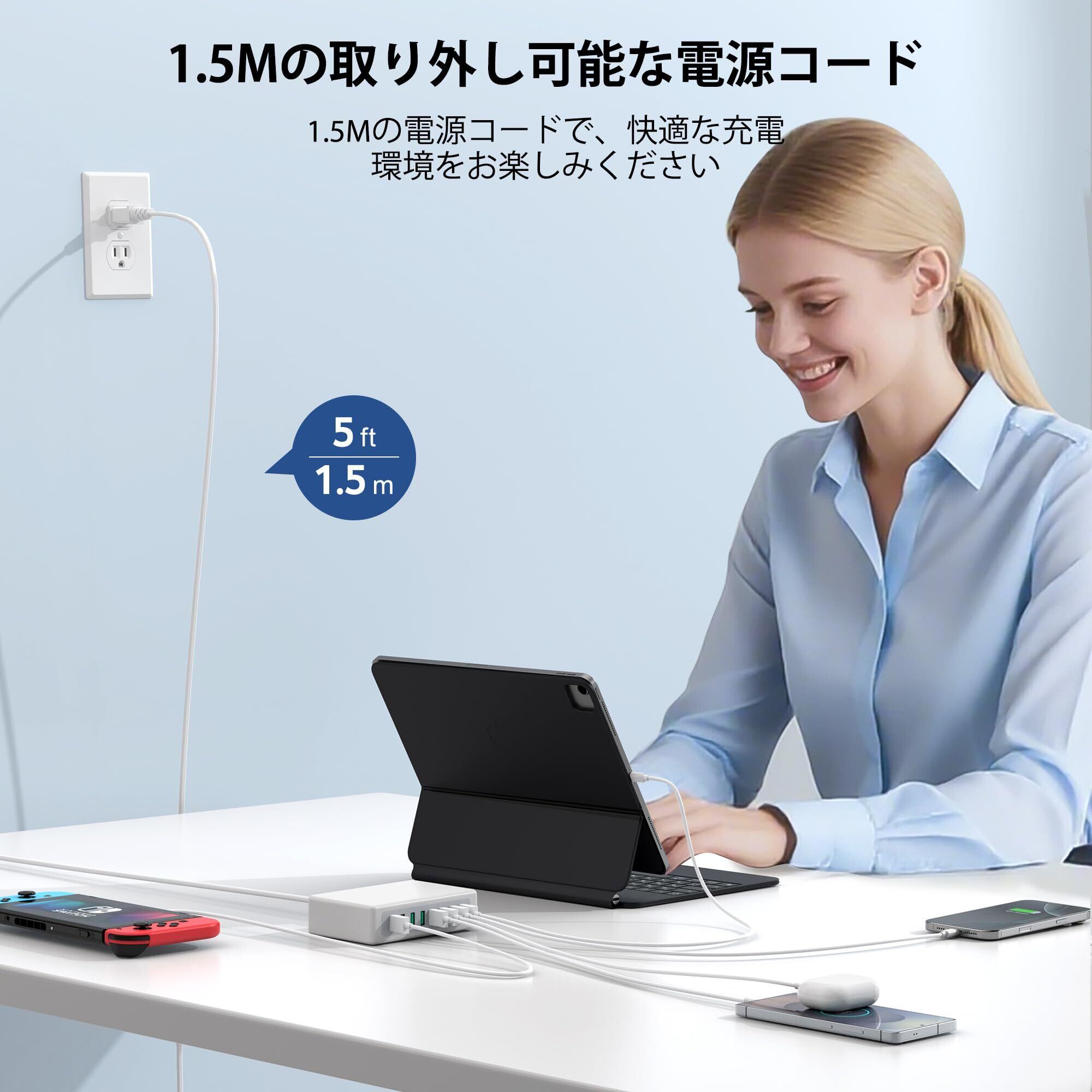 【コンパクトでポータブル】Type-C タイプc 充電器は、自宅、オフィス、旅行用の複数のデバイスを完璧に充電します。小型なので 50% のスペースを節約でき、ポケット、ハンドバッグ、旅行用ケースに簡単に収まります。 1.5Mの延長ケーブルを備えた設計により、距離の制限を気にすることなく、好きなように充電できます。