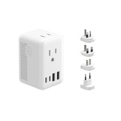 【1台6役海外旅行用変圧器】 2つのACコンセントで220V~250Vを100V~125Vに変換可能(対応出力:30W ~ 1200W規定の出力範囲を超える製品の使用は禁止されています。)。さらに、合計4ポート(USB-C×2を含む)のUSB充電機能を搭載し、多様なデバイスを同時に充電可能。コンパクトで持ち運びに便利であり、海外出張や旅行先でも安心してご利用いただける多機能変圧器です