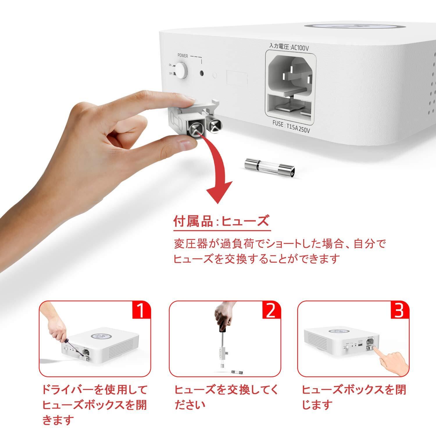 ■【ご注意】本製品は100Vから220Vの昇圧機能のみであり、220Vから100Vへの降圧はサポートしておりません。接続のデバイスが220V対応であることを事前にご確認の上ご使用ください。 日本国内では使用できませんのでご注意ください。