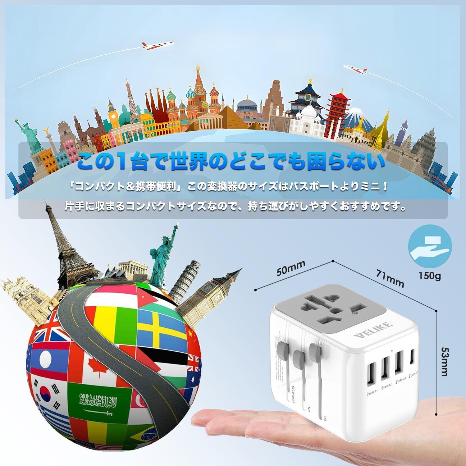 【数量限定】海外 変換プラグ VELIKE コンセント マルチ変換プラグ 海 外用電源プ ラグ 3USB-Aポート 1USB-C 全世界対応 変換器 C/BF/O/Aタイプ マルチアダプター 海外旅行用充電器 200ヶ国以上通用 正規1年