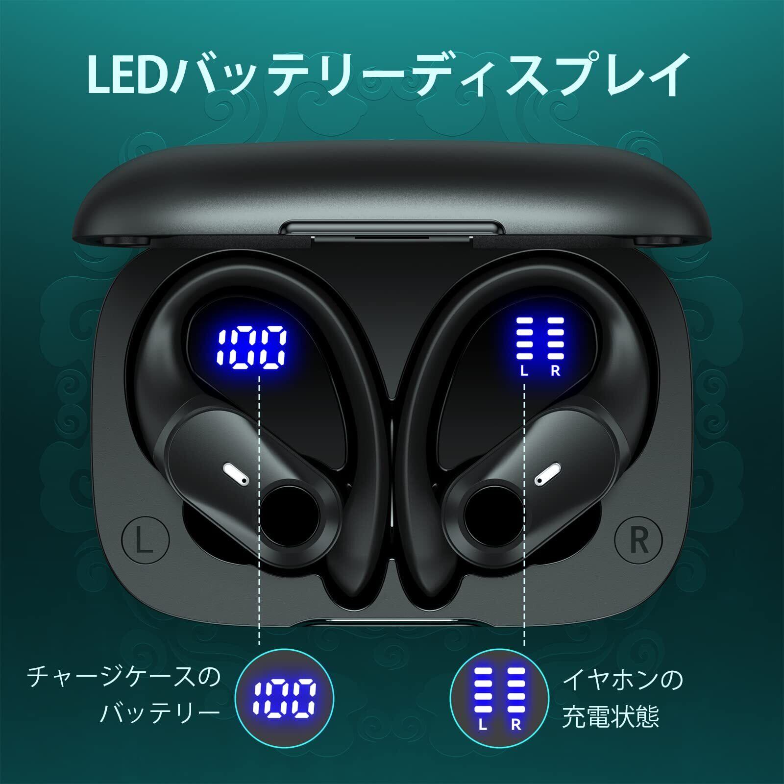 【在庫限り】イヤホン bluetooth 耳掛け式イヤホン ワイヤレスイヤホン bluetooth イヤホン 最大40時間再生 ブルートゥースイヤホン Hi-Fi音質 AAC対応 LEDディスプレイ 物理ボタン誤操作なし 落ちないイヤホン 快適装着感 ランニング イヤホン IPX7防水 スポーツ イヤホン 片耳/両耳モード QI/Type-C充電 通勤通学/WEB会議に適用 iOS/Android(黒い)