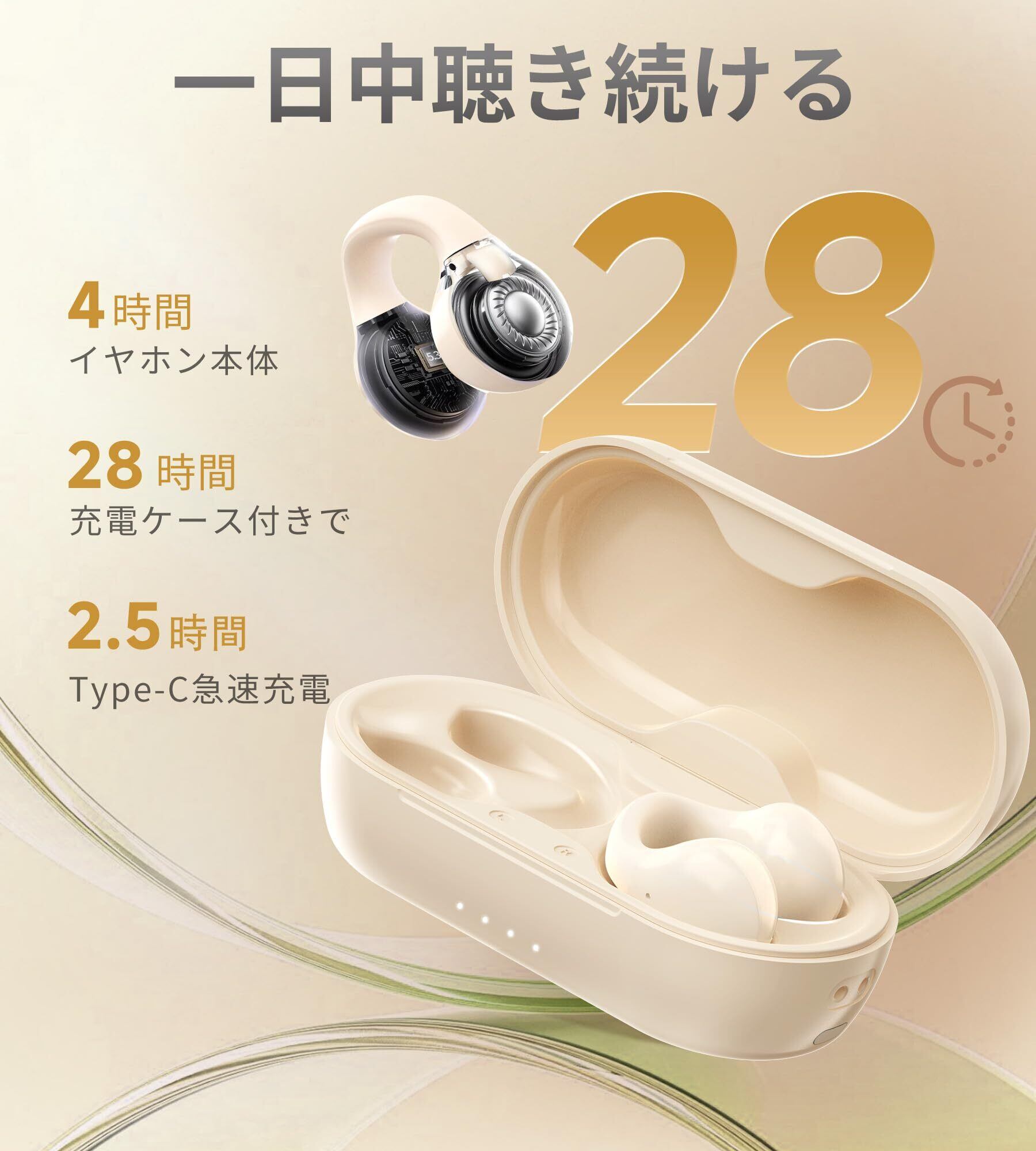 King Lucky イヤーカフ イヤホン ワイヤレス Bluetooth5.3|オープンイヤー設計|耳を塞がない|IPX4防水|マイク内蔵|急速充電|音漏れ防止|空気伝導|骨伝導ライク|Hi-Fi音質|長時間再生|CVC通話対応|通勤・ジム・プレゼント向け (オフホワイト)
