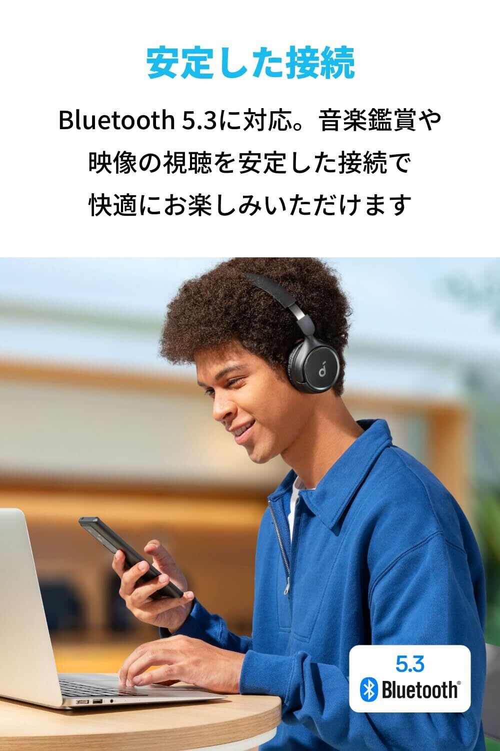 Bluetooth 5.3による安定した接続:Soundcore H30iはBluetooth 5.3に対応。音楽鑑賞や映像の視聴を安定した接続で快適にお楽しみいただけます。