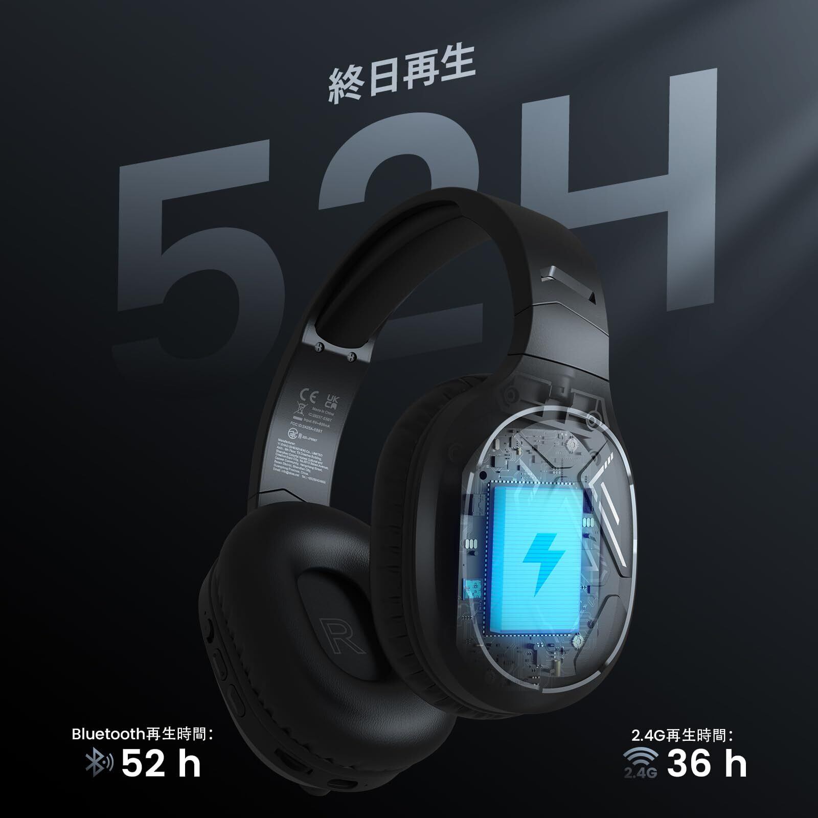 【新着商品】EKSA ヘッドセット ゲーミング「2.4G USB/Bluetooth/TypeC/3.5mm有線/無線」 ゲームヘッドホン マイク付き 7.1ch 立体音響 235g 軽量 低遅延 ワイヤレス ゲームヘッドフォン ゲーム向き 50mmドライバー ENC マイク レザー 3モード接続 防汗 PC / PS4 / PS5 / Xbox/Switch対応 E5BT「黒·ブラック」