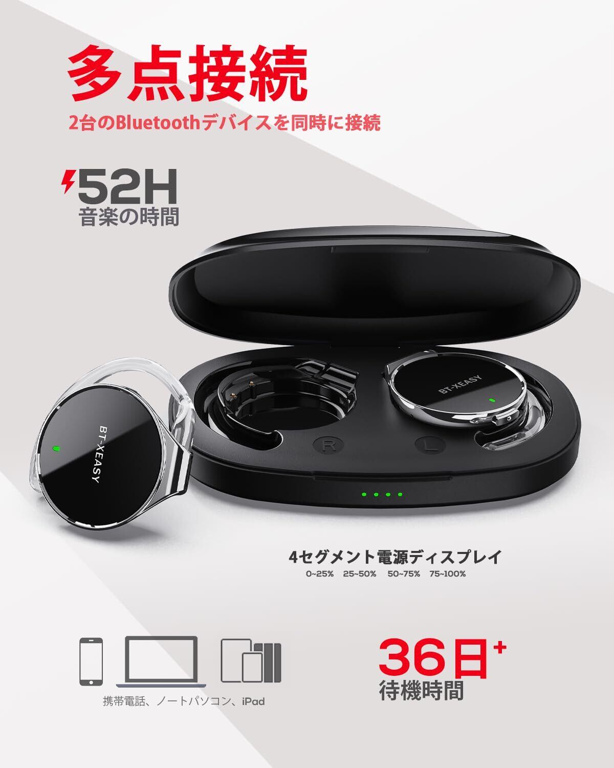 【最大18時間音楽が聴ける】オープンイヤータイプの耳掛け式イヤホンは、1回のフル充電で最大18時間音楽を聴くことができます。充電ケースをフル充電すると、スポーツBluetoothヘッドホンは音楽の合計リスニング時間は最大52時間です。