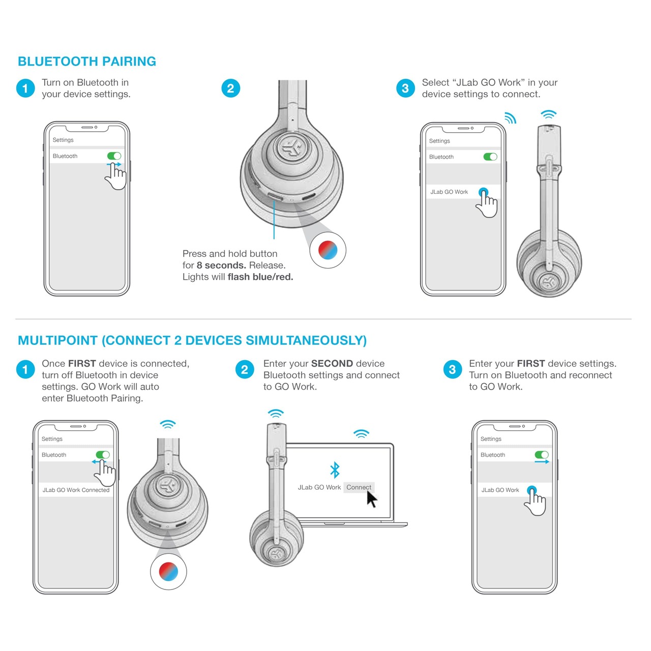JLAB Go Work ゴーワーク ワイヤレス オンイヤー ヘッドセット
