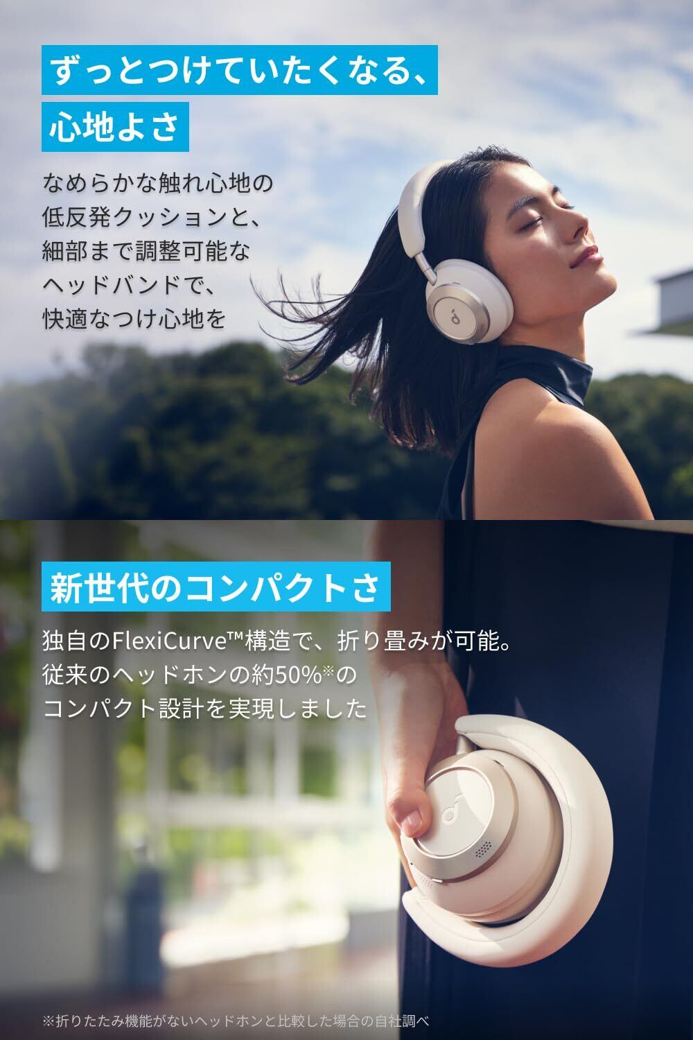 新世代のコンパクトさ: 独自のFlexiCurve構造で、折りたたみが可能。従来のヘッドホンの約50%のコンパクト設計を実現しました。※折りたたみ機能がないヘッドホンと比較した場合の自社調べ