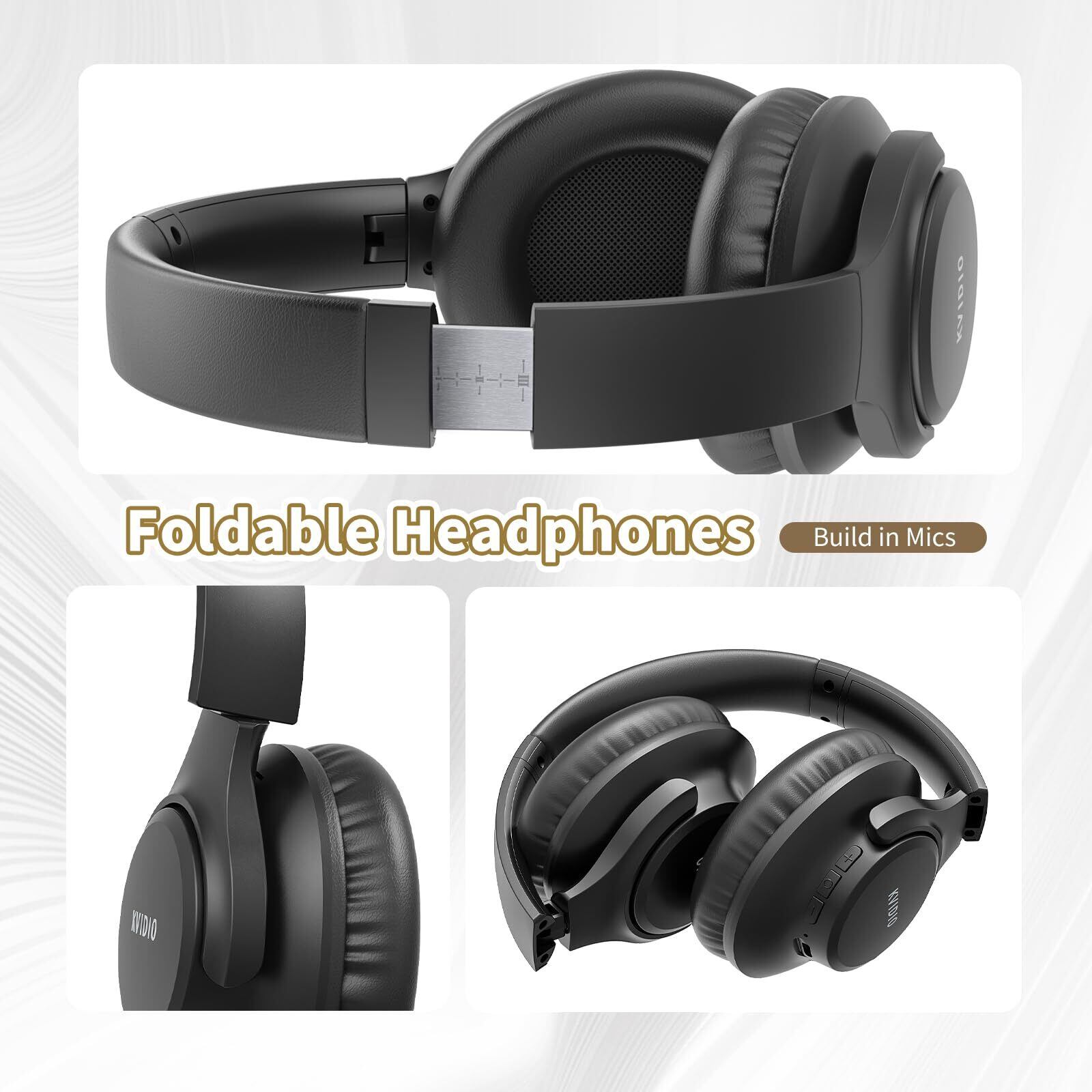 【特価セール】ワイヤレス ヘッドホン KVIDIO Bluetooth 5.4 65時間再生 40mm HD ドライバーユニット オーバーイヤーヘッドホン マイク内蔵 有線 無線 両用 遮音 密閉型 ハンズフリー通話可能 ブルートゥース ヘッドフォン ブラック (黒)