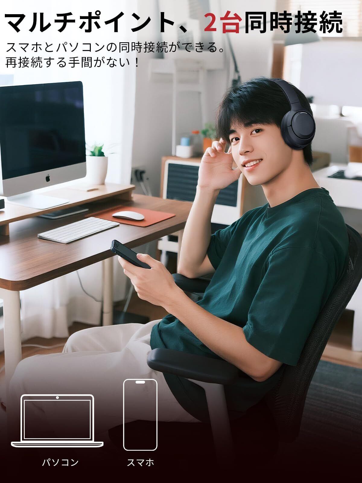 ■【マルチポイント接続とハンズフリー通話】最大2台のデバイスに同時接続が可能で、簡単に切り替えて使用できます。また、内蔵マイクを使用することで、クリアな音質でハンズフリー通話ができます。ビジネスシーンや友人との会話でも安心してお使いいただける品質です。
