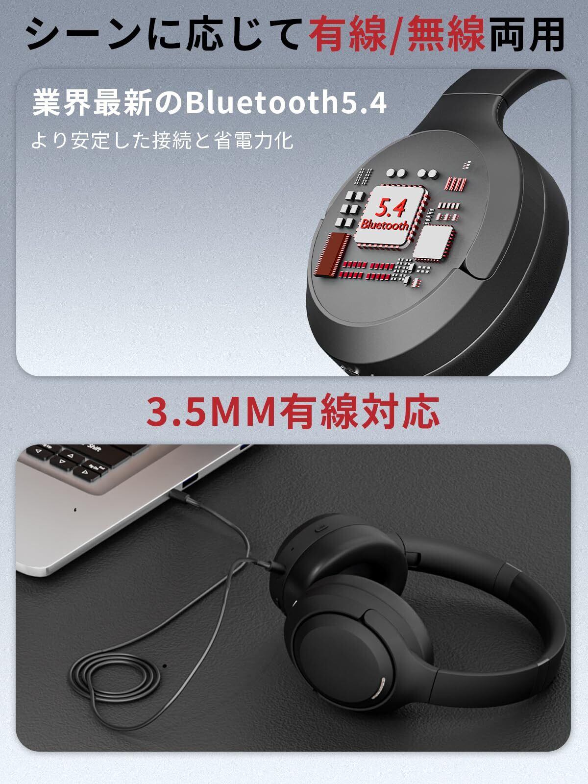 ■【多様な接続方法に対応】Bluetooth 5.4により、迅速かつ安定したワイヤレス接続が可能です。さらに、付属の3.5mmオーディオケーブルを使用しての有線接続にも対応しており、様々なデバイスで柔軟にご利用いただけます。