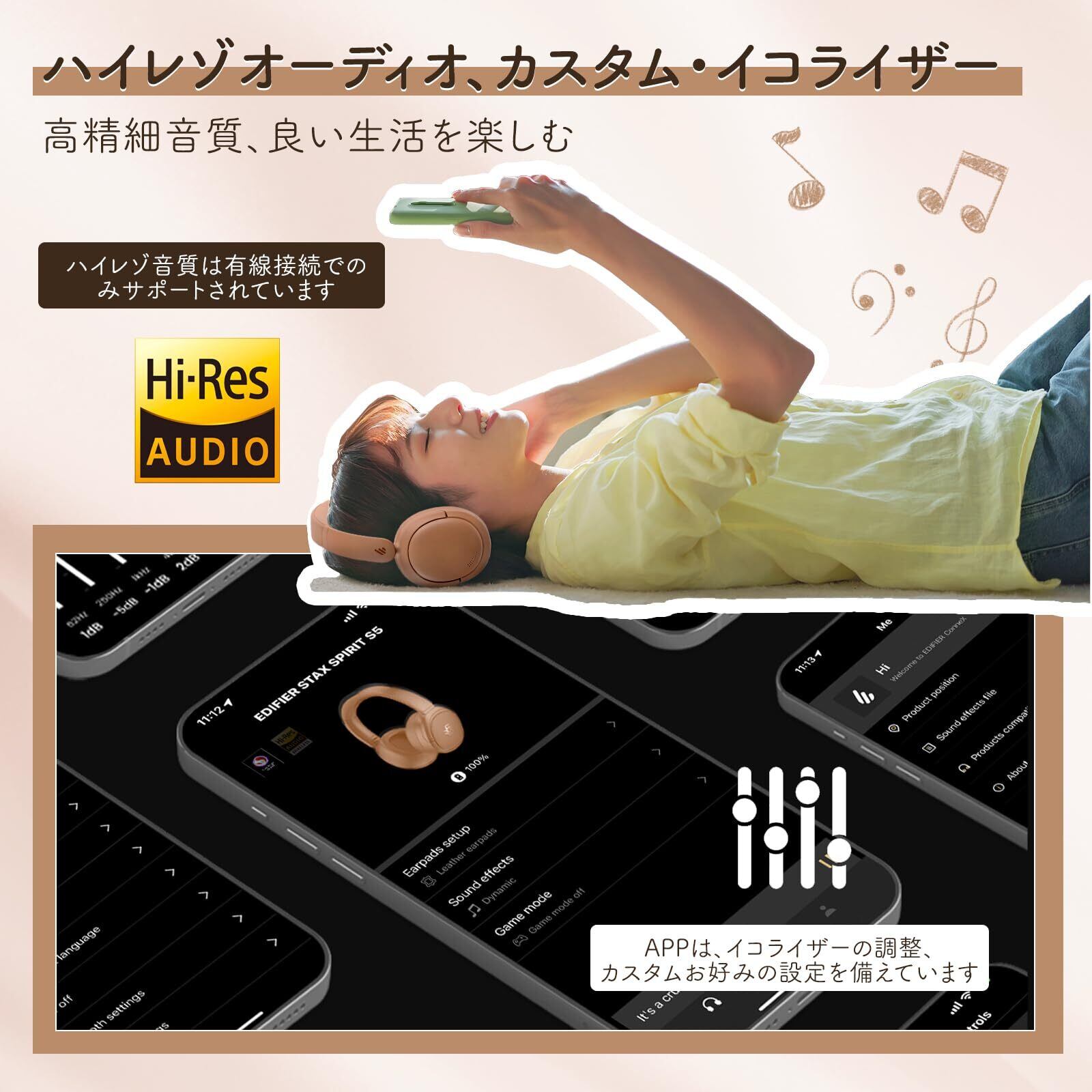 鮮明で詳細なハイレゾオーディオ:鮮明で詳細なハイレゾオーディオ:40mmダイナミックドライバーは広い音場とパワフルな低音を、チタンコート振動板はクリアで透明感のある中高域を再生します。TypeCオーディオケーブルで接続すれば、より高音質なオーディオを簡単に楽しむことができます(ソースがハイレゾの場合)。Edifier Connex Appには独自のイコライザーが付属しており、好みに合わせて低音、中音、高音の周波数を自由に調整することができ、鮮明で心地よいサウンドを作り出します。
